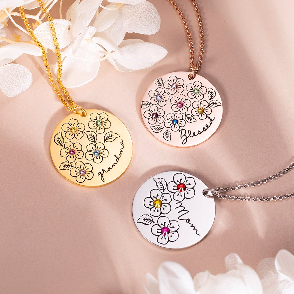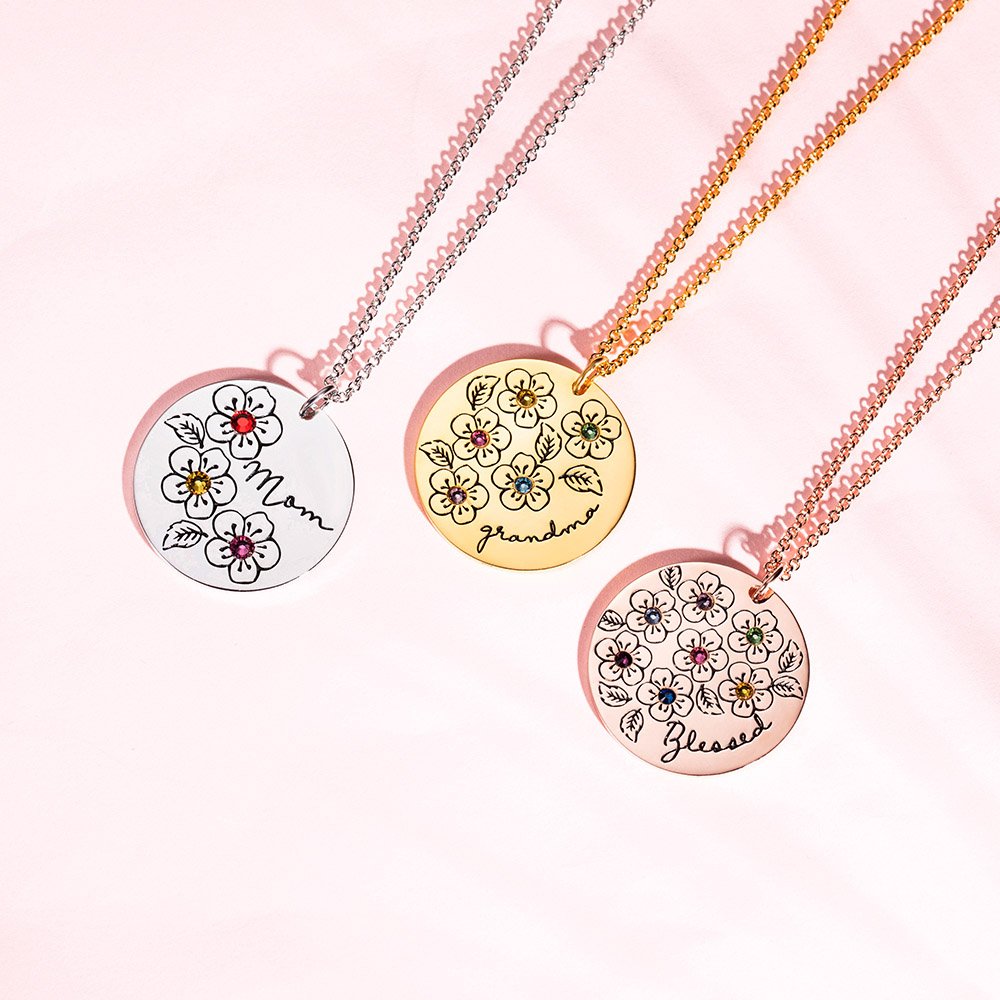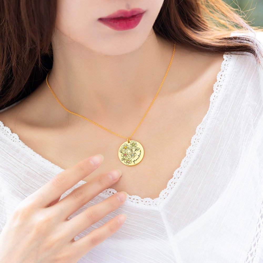 •The round disk is a classic design that can match all of your outfits. The engraving flowers and names are clear enough to read for grandmas and moms. The position of flowers will be adjusted by the number of flowers you selected. Each sakura is a symbol of one child in your family.