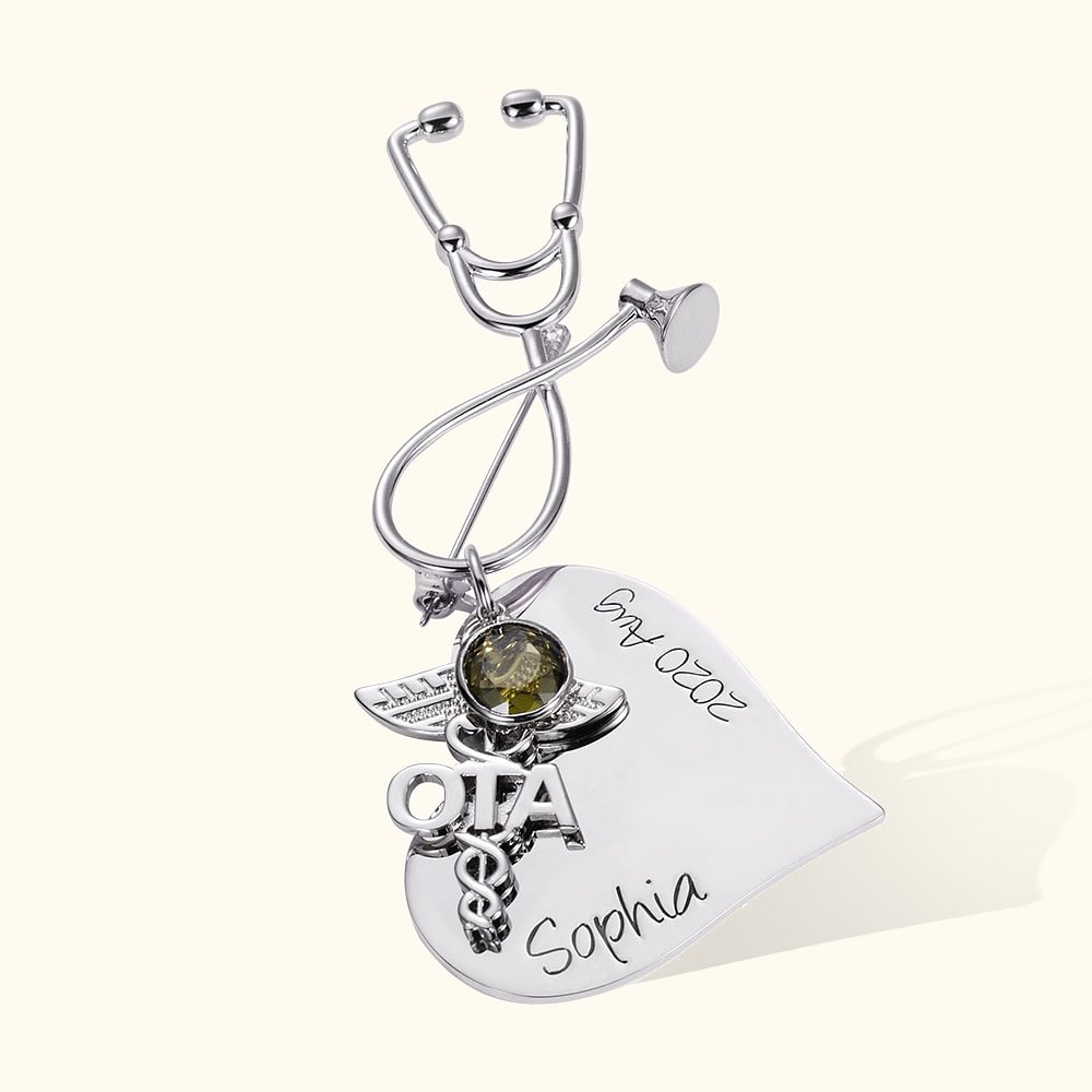 • Delicate Design: This birthstone brooch combines the iconic stethoscope of the medical staff and the abbreviation of the medical staff's practicing certificate. Engraved with name and date ,which can meet the needs of different identities and medical staff. It is an excellent commemorative gift for medical staff to graduate.