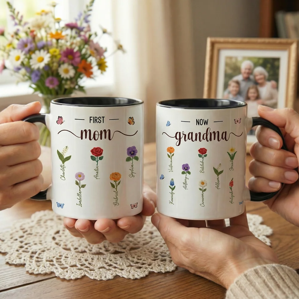 Every mothers day has a unique feel to it. And if this Mother’s Day, your mom has transitioned into a grandmother, our Faux Yarn Effect Ceramic Mug with Names will make a lovely gift. This sturdy mug can be designed with a beautiful name and birthflower design. You can select several kids’ names, their birth flowers, and pick a color of choice for the inside and handle.