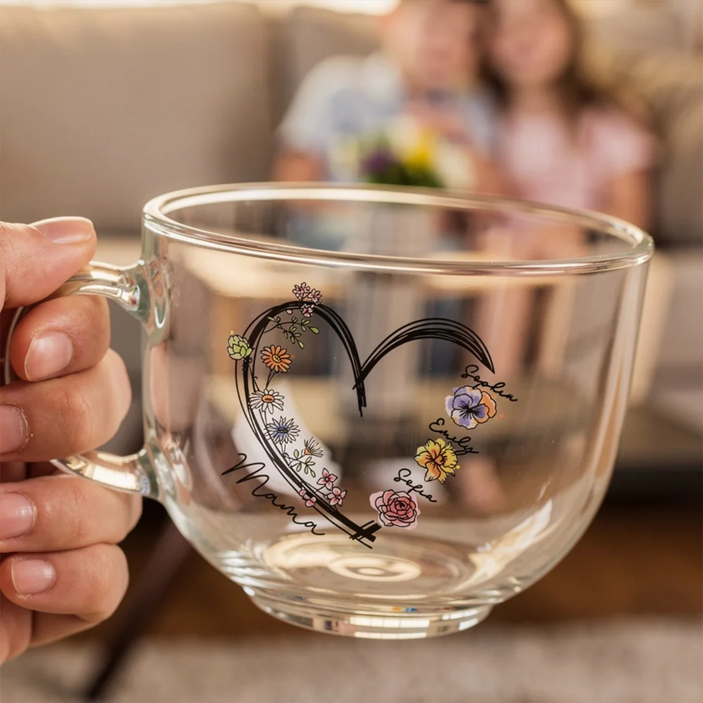 If your mom loves to collect beautiful tea cups or crockery in general, our Clear Glass Mug with Coaster will make her happy. You can get the cup printed with whatever you call your mom, along with birth flowers. The option for birthflowers can go up to 6.