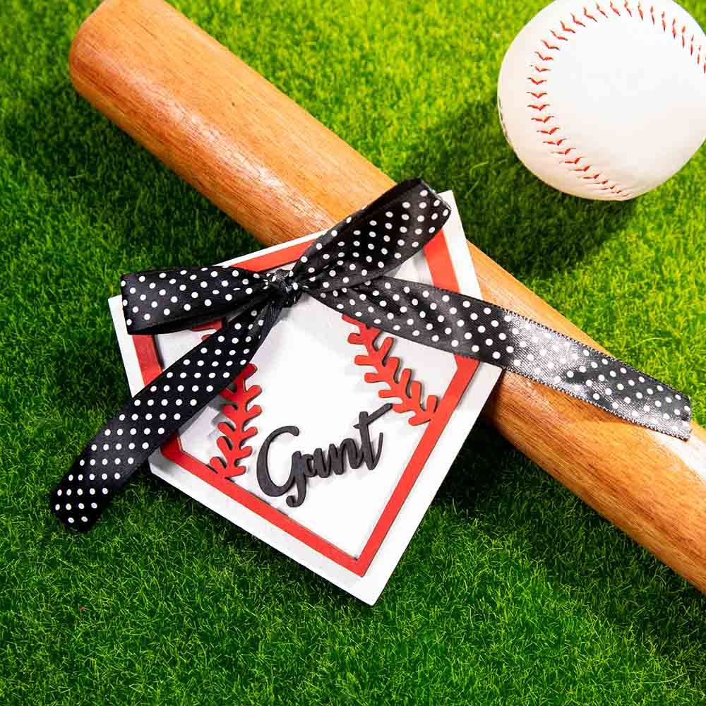 This personalized wooden decorative label adopts elements of baseball/softball/tennis/football/rugby cap in the design, which is very suitable for baseball or softball fans!