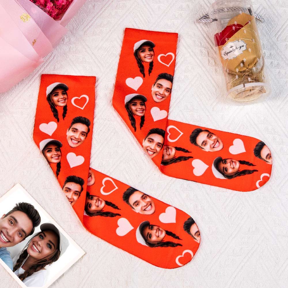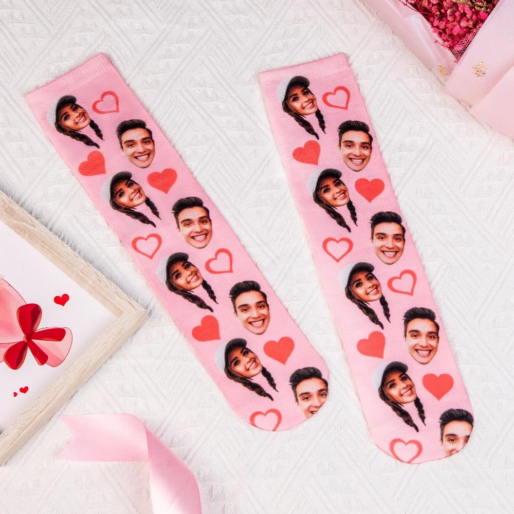 • Cusotm Face Socks: This socks can be customized with 1 or 2 face photo.It can be the photo of yourself, couples, mother, wife and husband, girlfriend and boyfriend, etc. Our custom photo socks are unisex socks suitable for both boys and girls,men and women. It is a meaningful Valentines gift for couples,which means you will accompany with him/her all the life,warming each other from feet to heart.