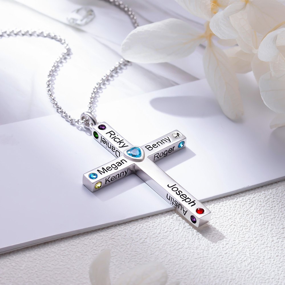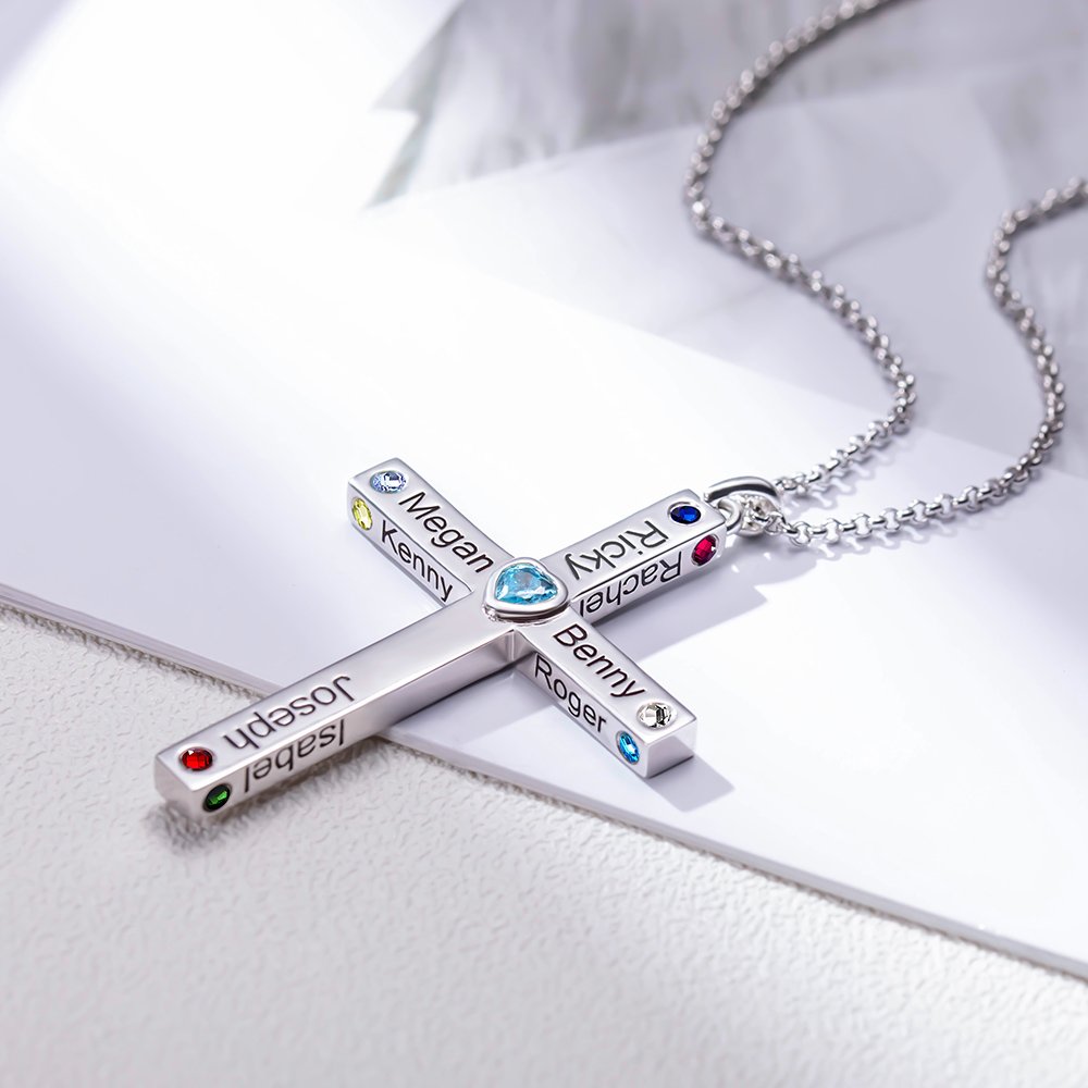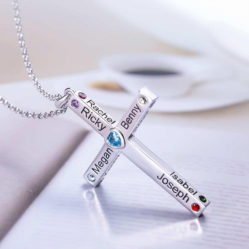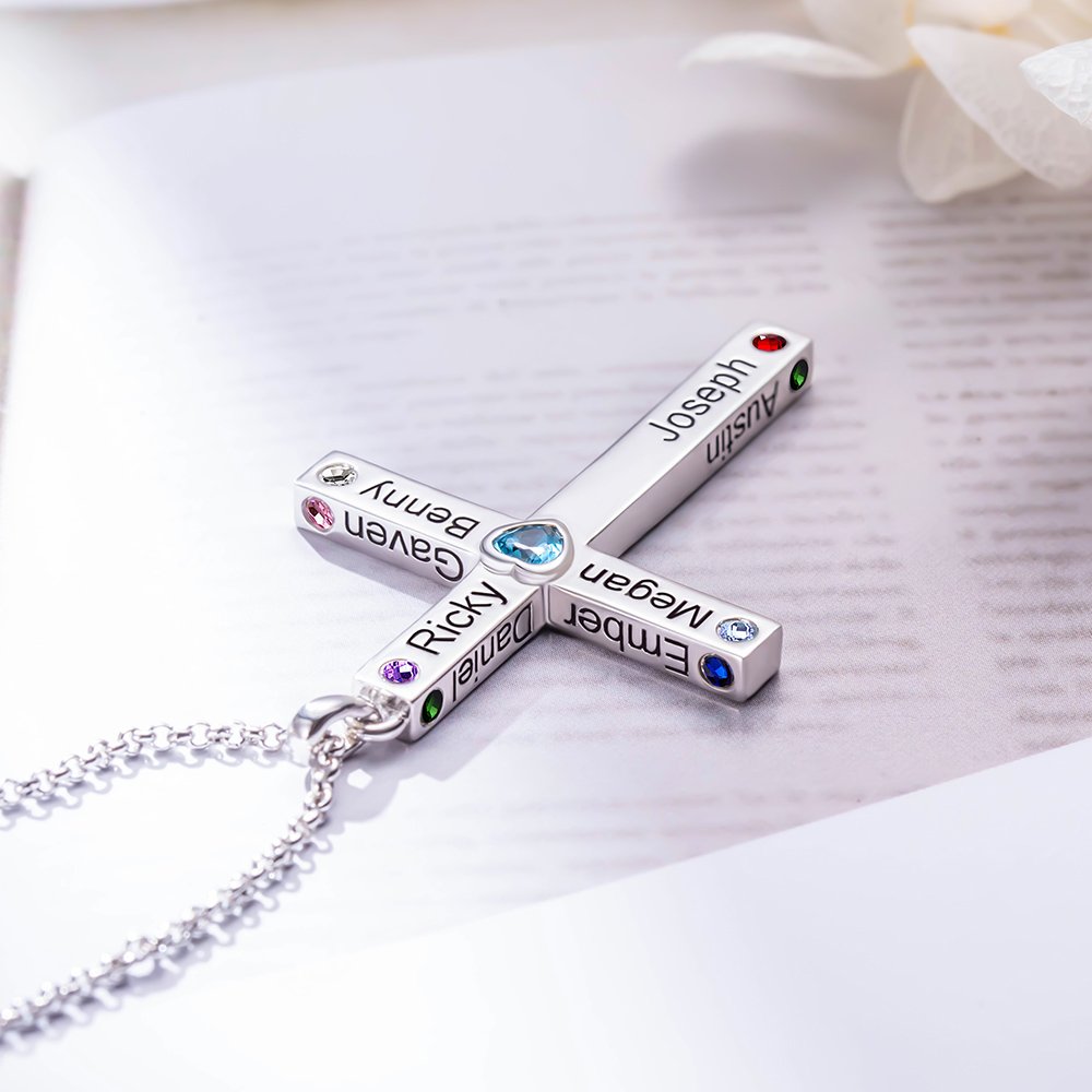 • We have updated and optimized the style of this cross bar necklace, adding the setting of gems in the center of the cross and the other four to make it more individual. The heart-shaped jewel in the middle can represent the parents, and the small round jewel can represent friends, children, and so on. Express our love and prayers for family or friends.