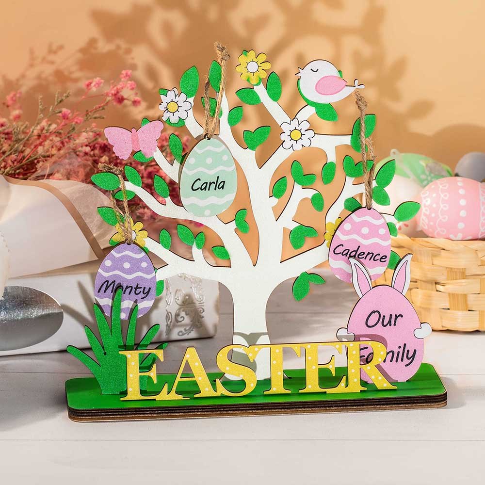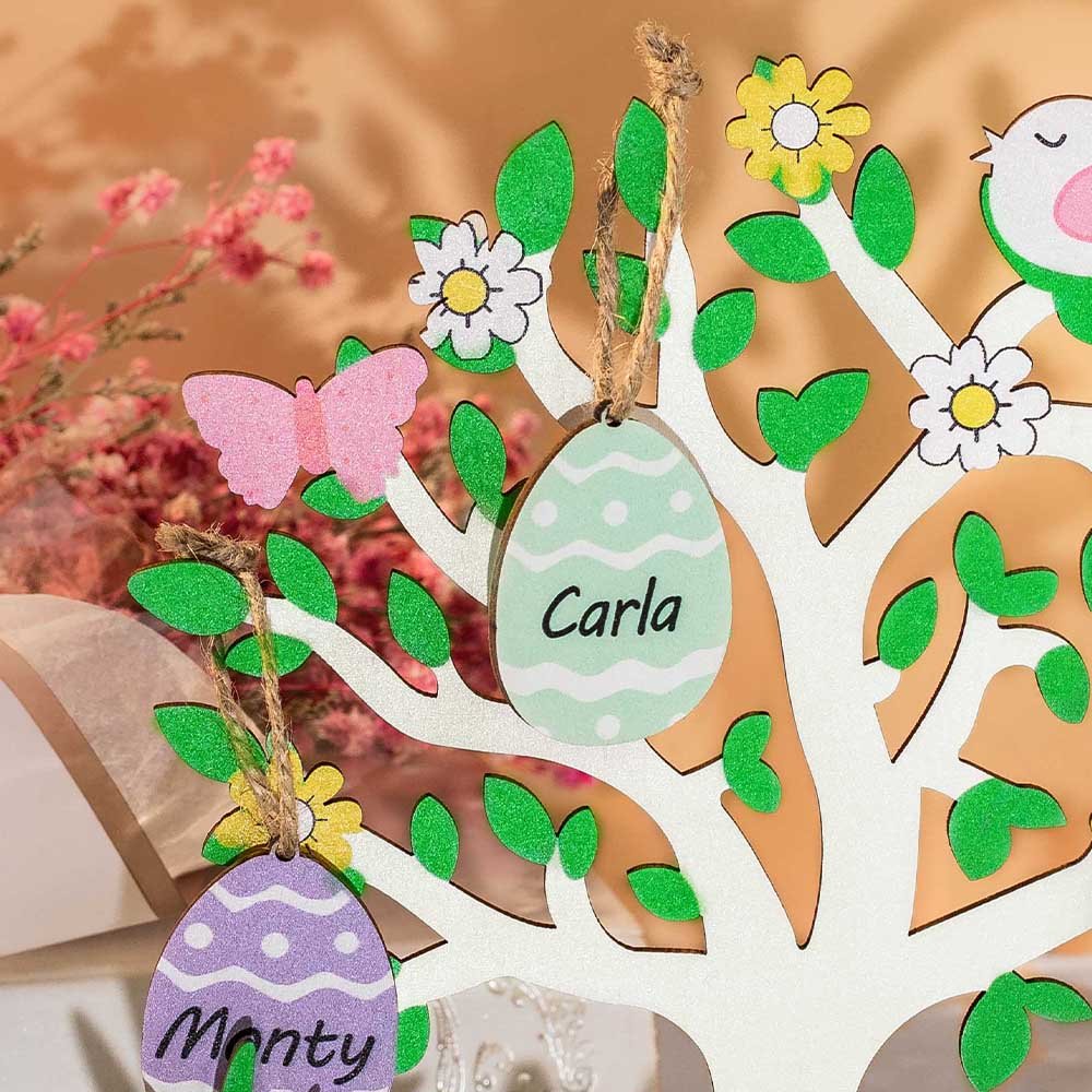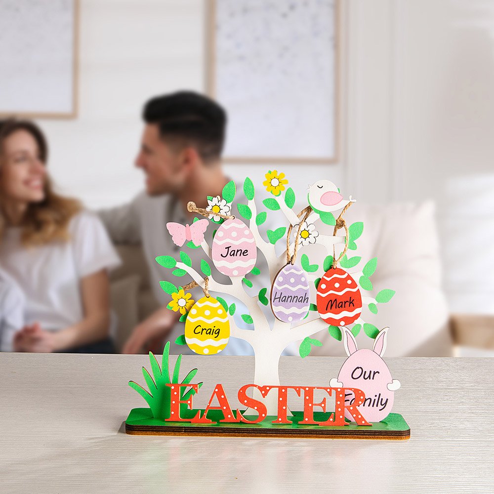 Each egg represents a member of the family. You can customize your own Easter egg tree for your family by customizing the name and choosing preferred color to make it unique.