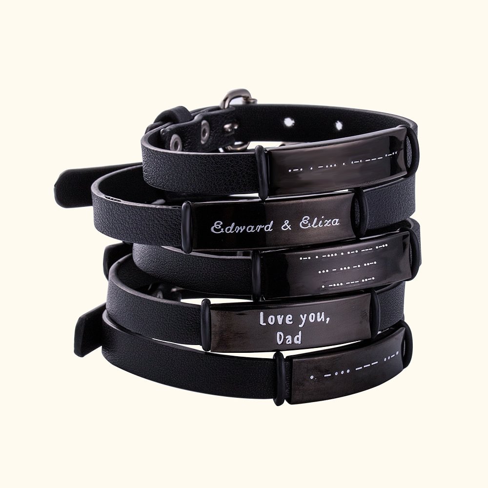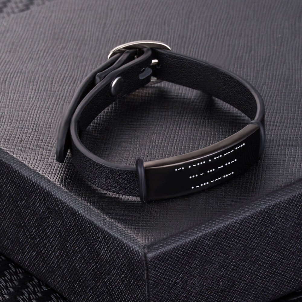 •Simple and exquisite man leather bracelet, hidden information through the Morse code or words you like attached to the bracelet. The number of the dots and lines can present different meanings. The secret shared only between you and the gift owners.