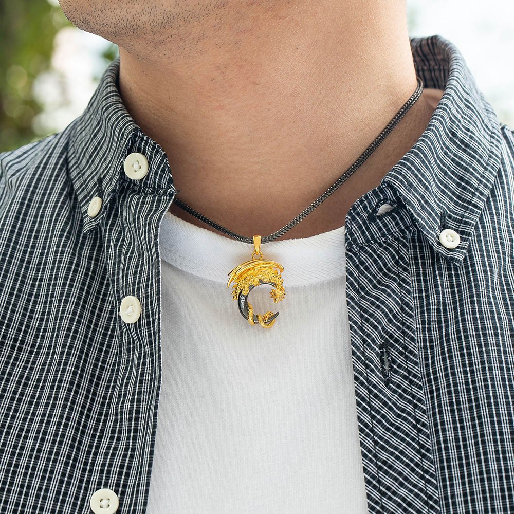 This necklace is designed with a dragon and a moon. The dragon perches on the crescent moon, as if ready to soar into the sky at any time. You can customize your name to make your necklace unique. The wearer seems to be able to draw endless strength from it and bravely face every challenge in life.