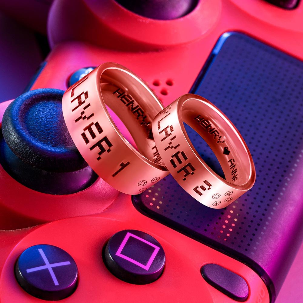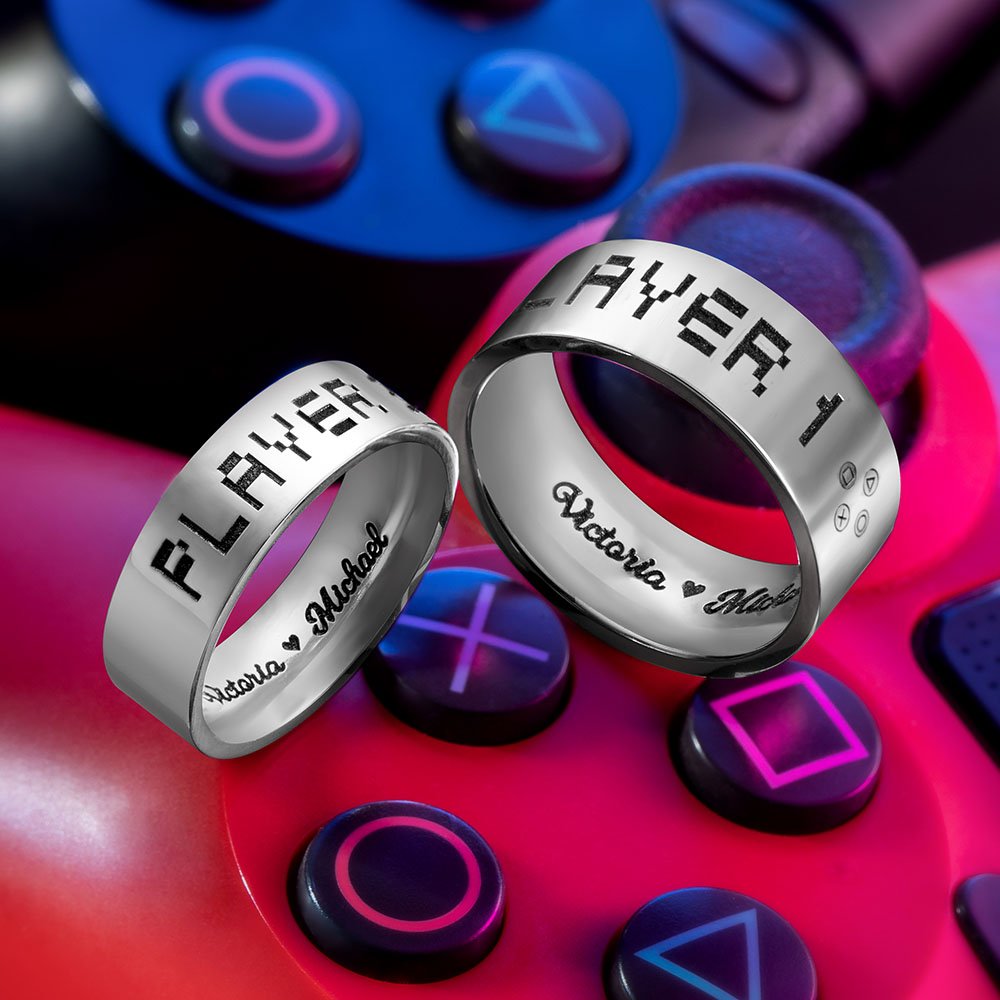 Customized Player1 Player2 Game Ring for Couple Ring Set