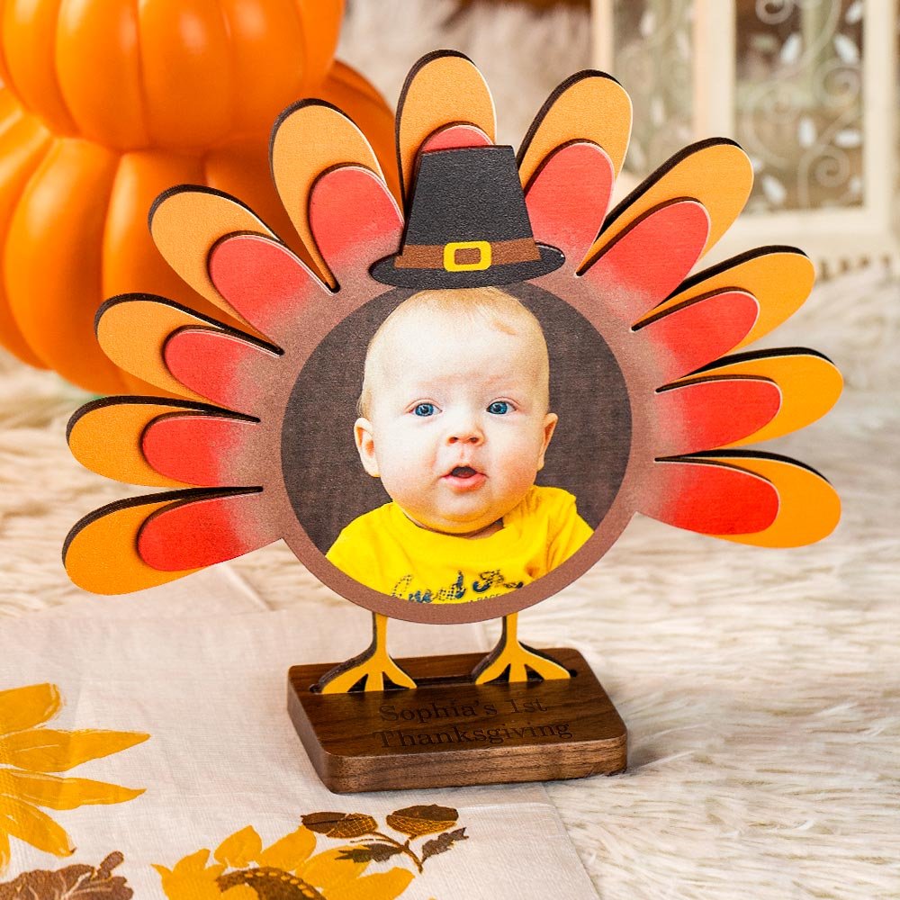 • Meaningful Gift to Baby: On this important day of Thanksgiving, use a unique photo frame to commemorate the baby's first Thanksgiving. This is a double-function decoration. On the one hand, it can be used as a Thanksgiving decoration to decorate the baby's room, and on the other hand, you can upload a photo of the baby to make it like a frame. The base can be engraved with the baby's name or blessings, etc.