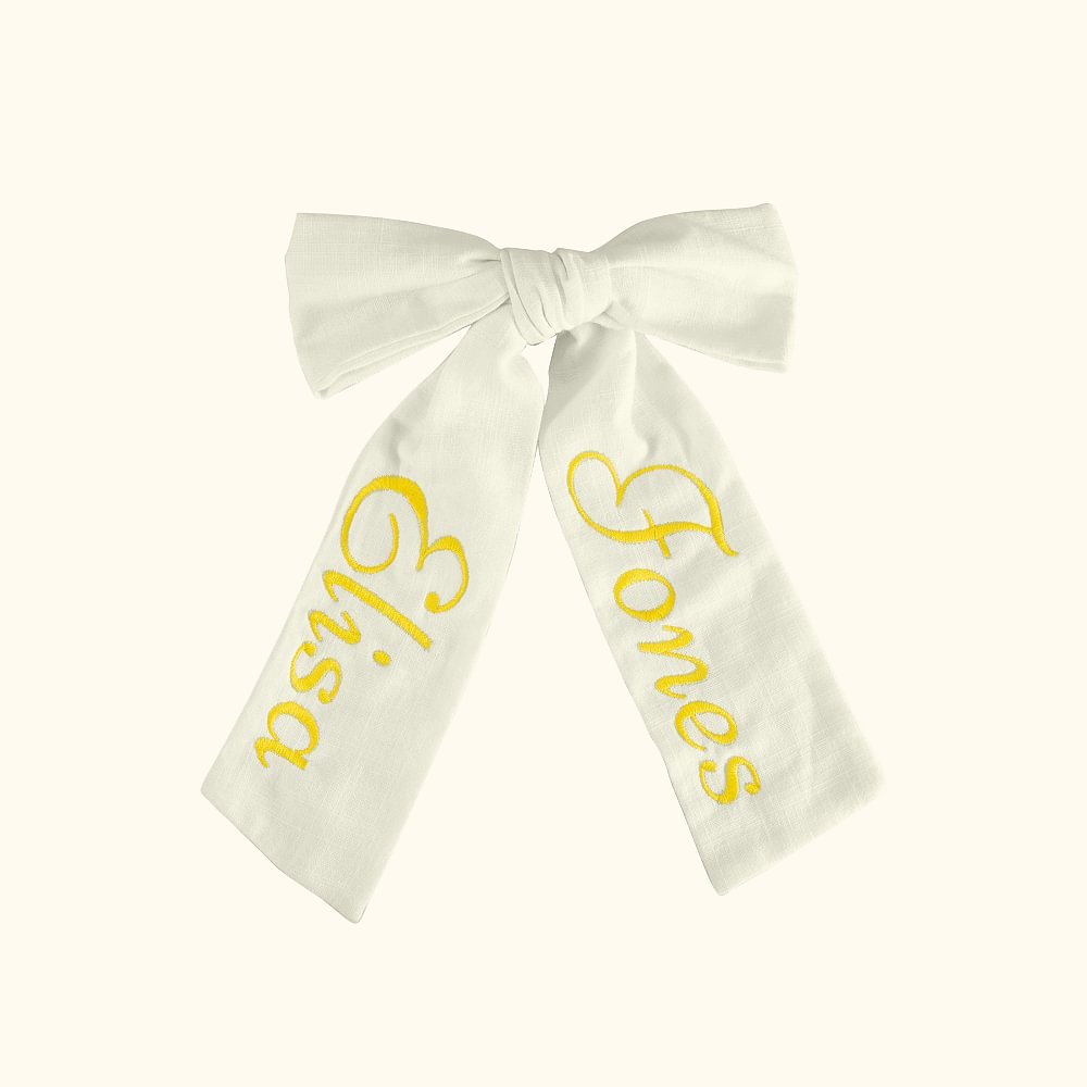 •Callie offers you the 100% Cotton long white bow embroidered for your little girl or yourself.