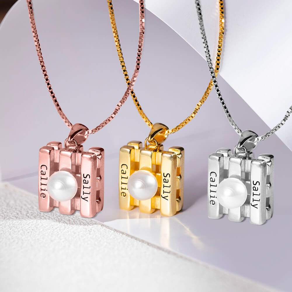 •This mother necklace design is inspired by the building construction set by 9 mini refined bars. A home is the same as a solid building structure. Mothers will be the center of the construction. The pearl stands for mother love, pure, eternal, and valuable. Engravings on the bars are up to 8 names. The whole family stays close to each other on this necklace.