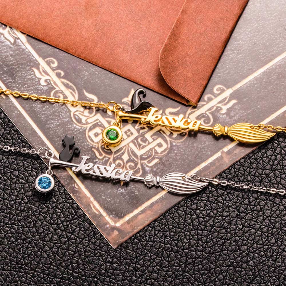 This personalized necklace features classic Halloween elements like a witch’s broom, a cat, or a stylish hat. Each detail is carefully crafted to capture the spooky yet fun essence of Halloween, making it a standout accessory for the season.