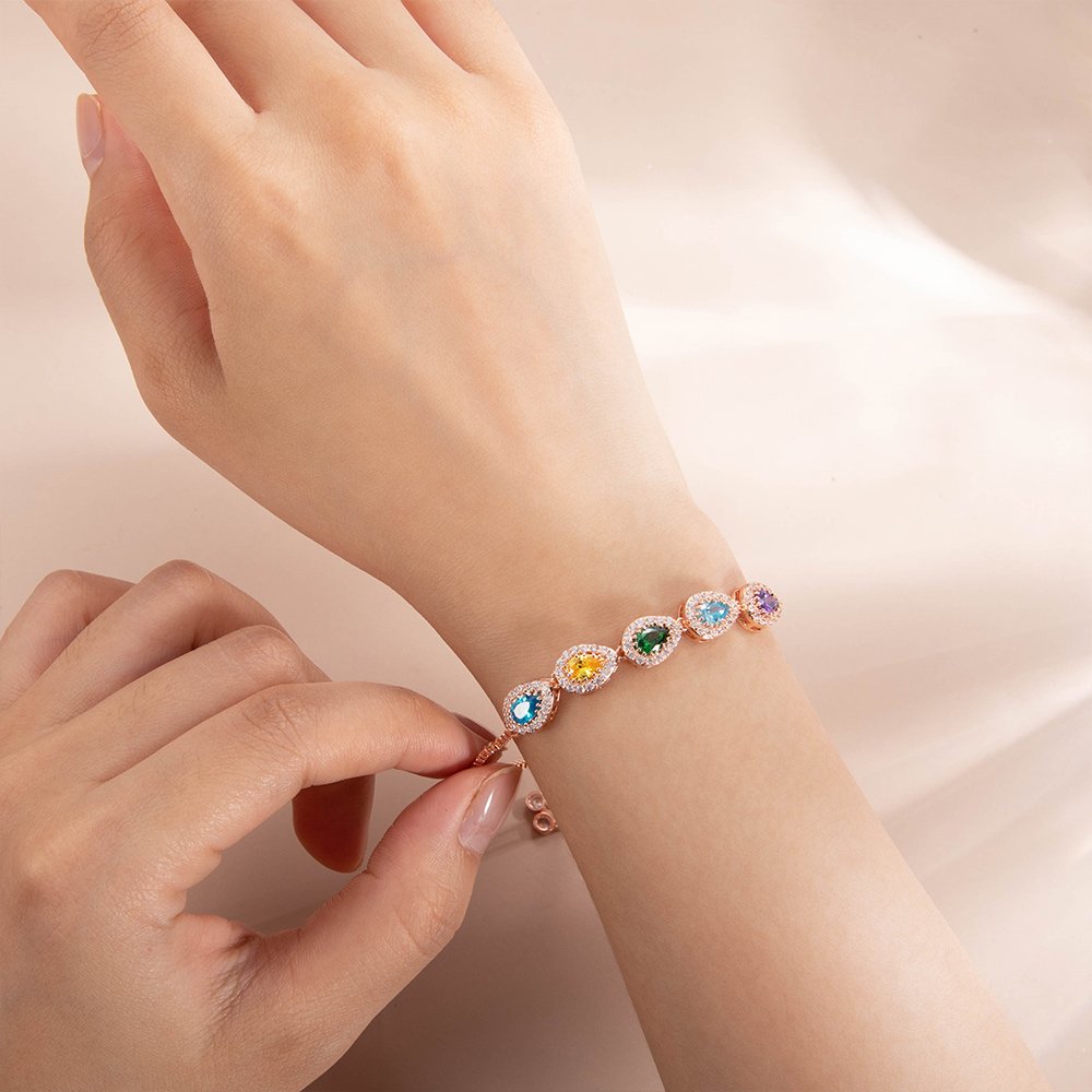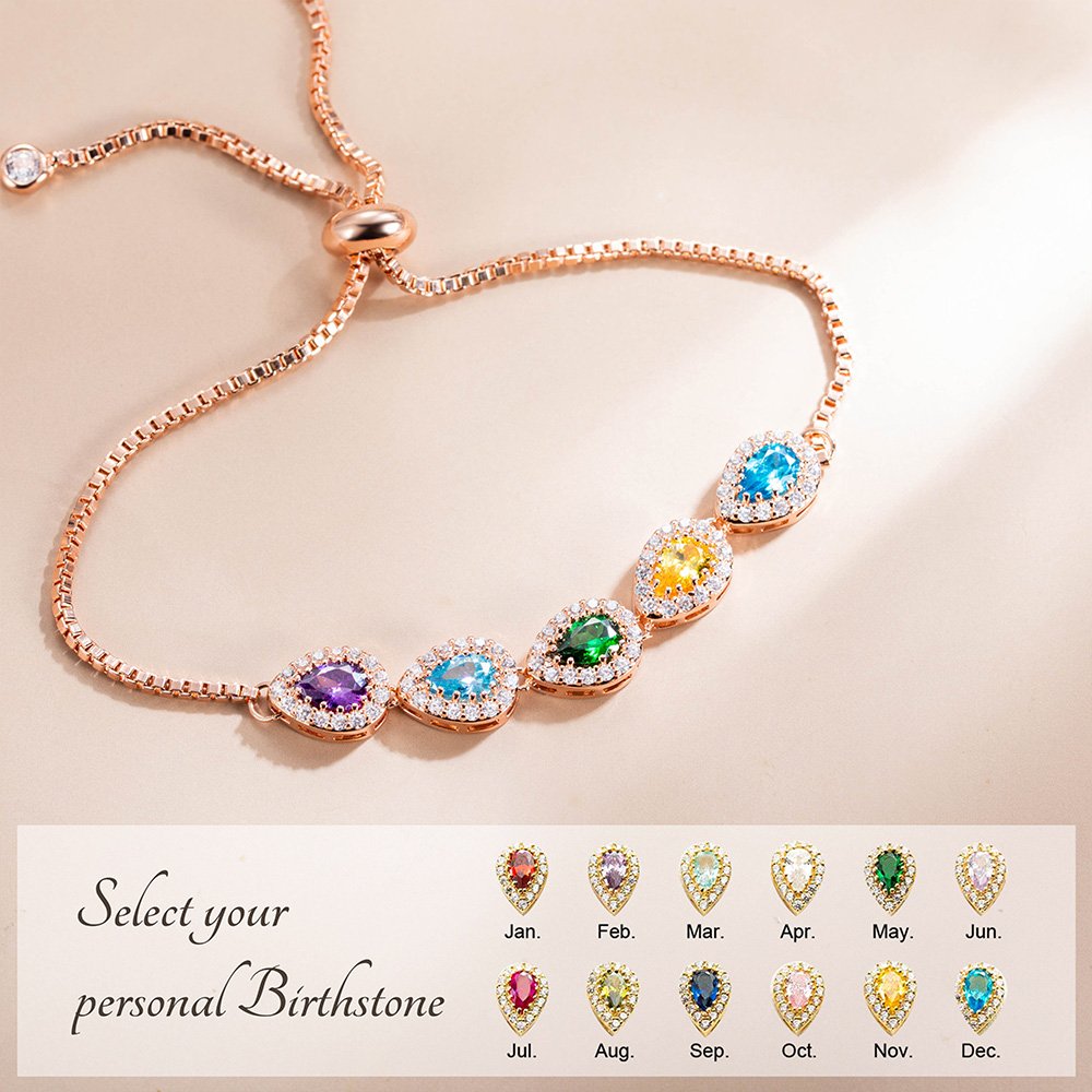 The teardrop-shaped birthstones are arranged in a delicate and graceful pattern to create a striking and sophisticated look. This bracelet is perfect for everyday wear or for special occasions.