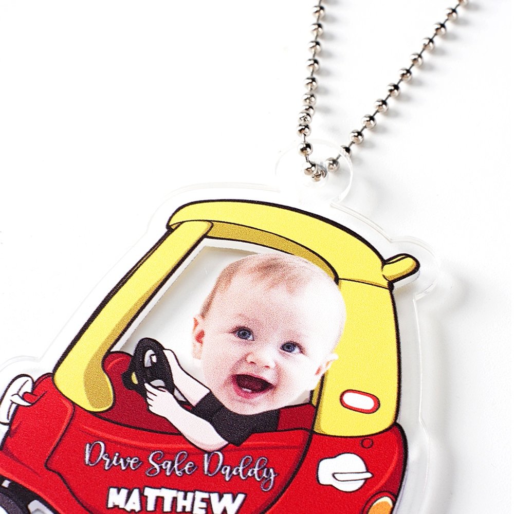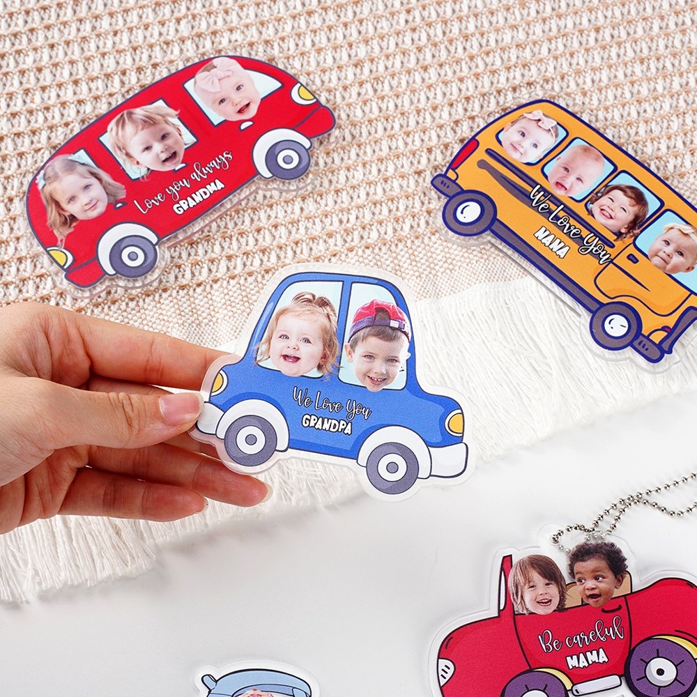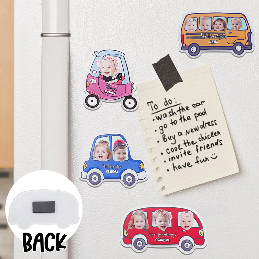 This kid's face photo car and fridge magnet features a charming doll face and a cute car pattern design. Supporting customization for 1-4 children's portraits, you can also add text and titles, making each ornament or magnet one-of-a-kind. Capture your child's adorable moments and convey warmth and love.