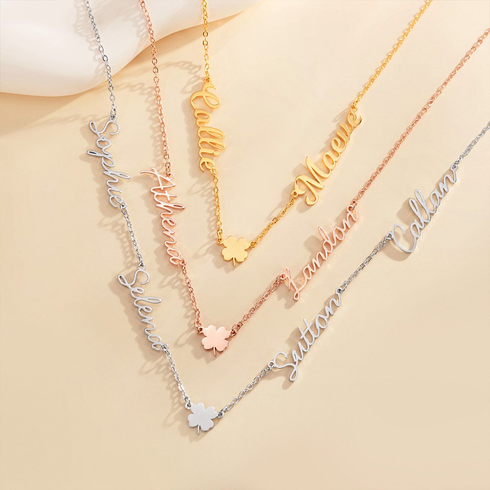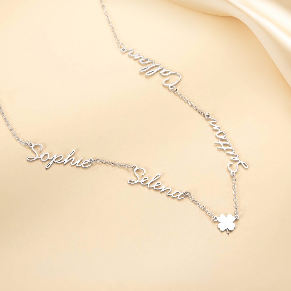 This beautifully crafted four-leaf clover necklace is a timeless symbol of luck and positivity. Personalize your necklace with 1 to 6 names next to the clover, allowing you to celebrate family, friends, or a special someone. It is an ideal gift to convey heartfelt wishes to loved ones.