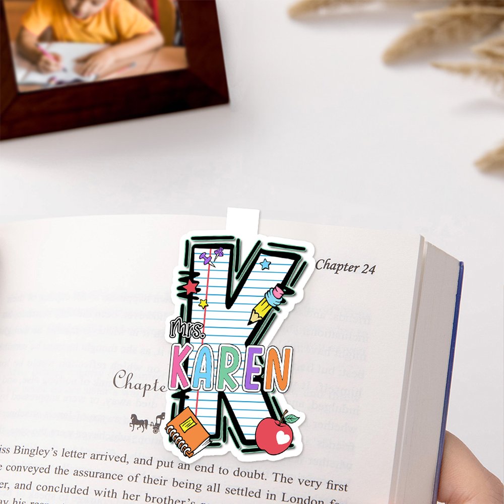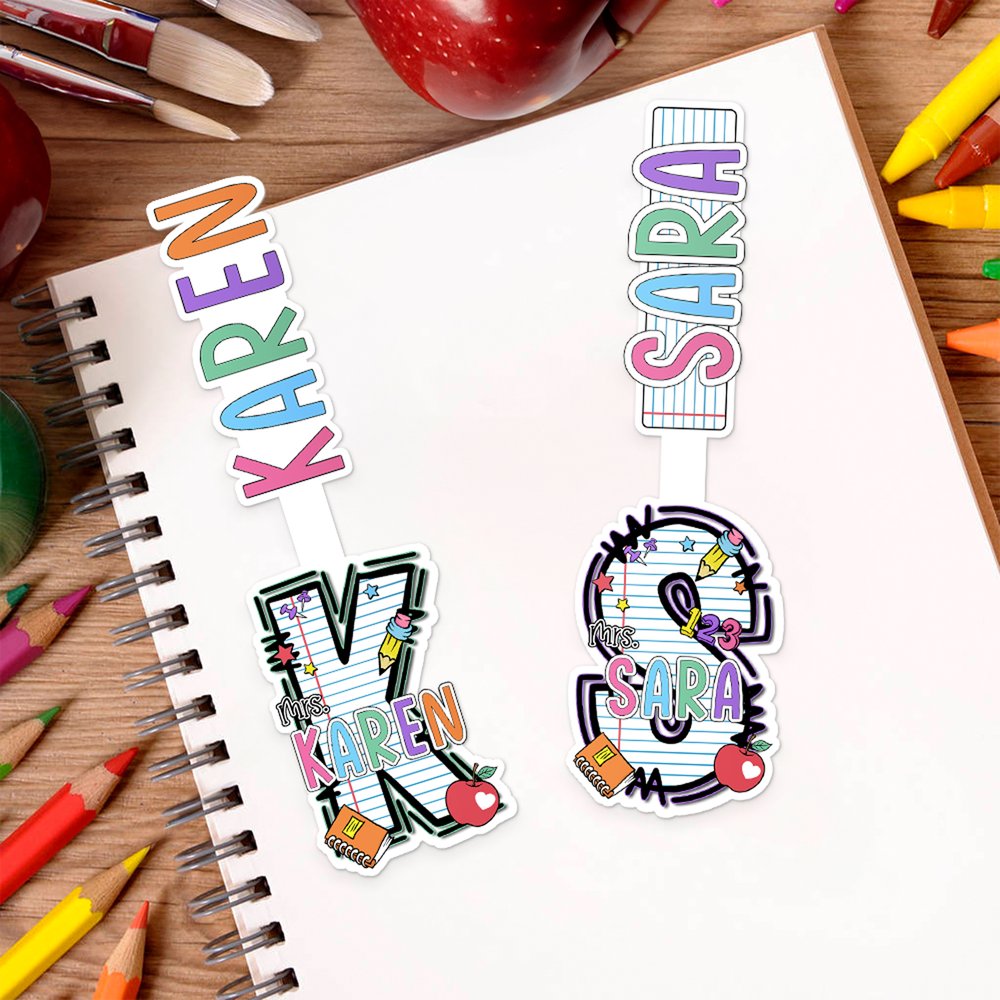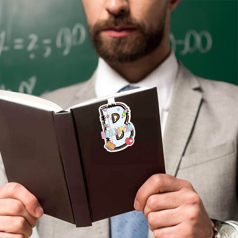 Personalized Doodle Art Name Apple Pencil Magnetic Bookmark Clips Graduation Back to School Gift for Teacher Book Lover