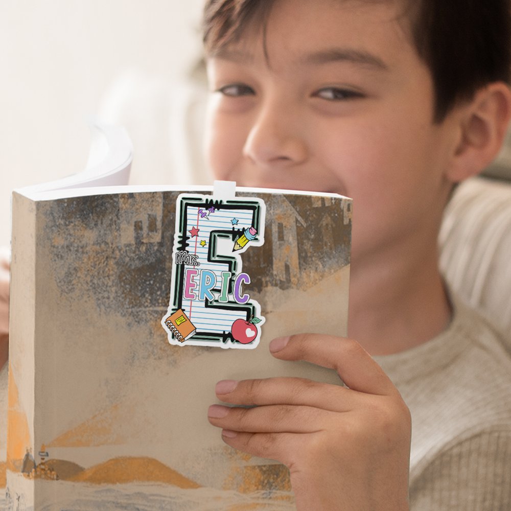 This magnetic bookmark adopts a custom design, integrating a lively graffiti art style. It is a bookmark composed of a name and initials. When the bookmark is closed, there are different patterns on both sides of the bookmark. One side features the initials combined with the name clipart pattern, and the other side displays a simple name, offering double personalization.