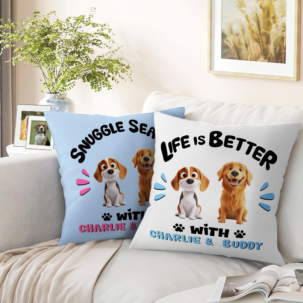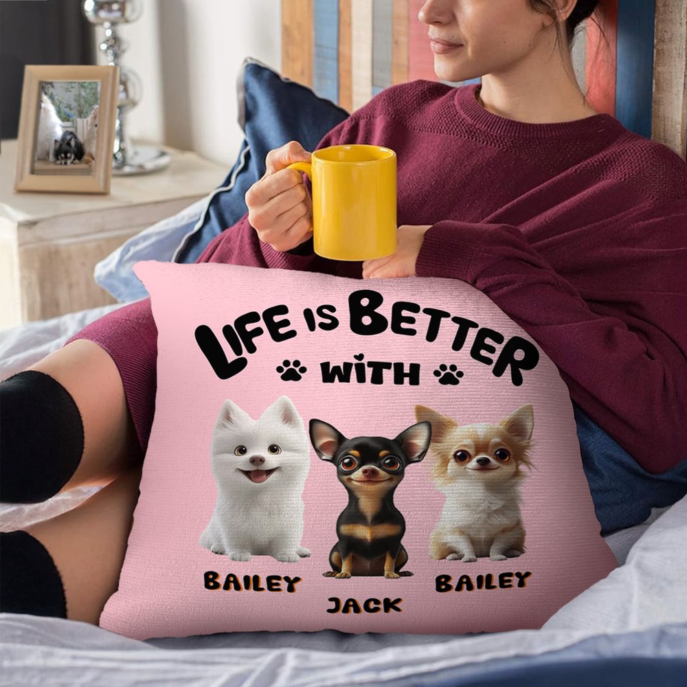 Designed specifically for dog lovers and dog parents, it's the perfect gift to express your love for your pet. Gifting this customized pillow for a birthday, holiday, or anniversary captures the deep bond between your loved one and their pet. It not only conveys the beautiful message that "life is better with pets," but also adds a unique touch with its personalized name, allowing your loved one to quietly convey their love through companionship.