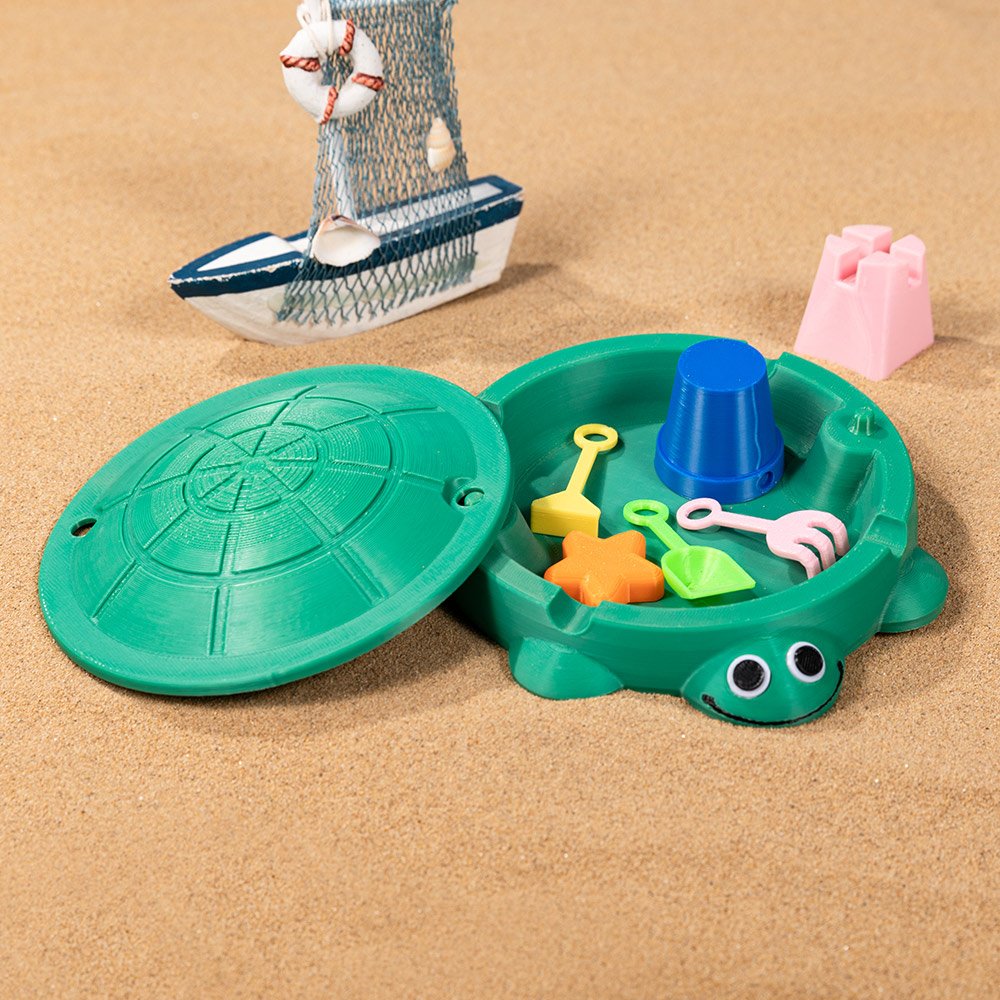 Our mini turtle sandbox provides a compact and portable version of the classic sandbox experience. The removable lid creates a closed-off space for children to explore their creativity with sand, indoors or outdoors. After playtime, simply tuck all toys inside the turtle's shell to keep everything organized and reduce clutter. This ensures that everything is neatly stored in one place, making cleanup a breeze for parents and kids alike.