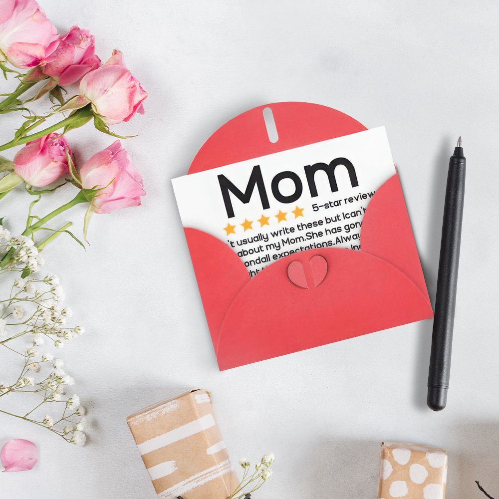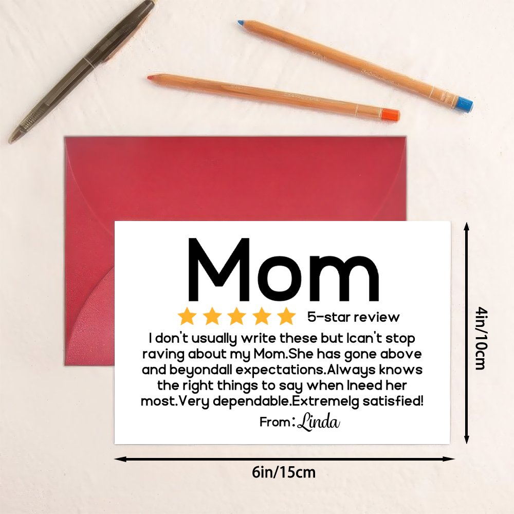 This customizable greeting card is the perfect way to express love and appreciation for your mom. Designed with five-star reviews, it allows you to choose from "Mum," "Mom," or "Mama" at the top, while the bottom features a personalized name inscription with options like "To," "From," or "To...From." Every detail reflects a deep emotional connection, making it an ideal heartfelt gift.