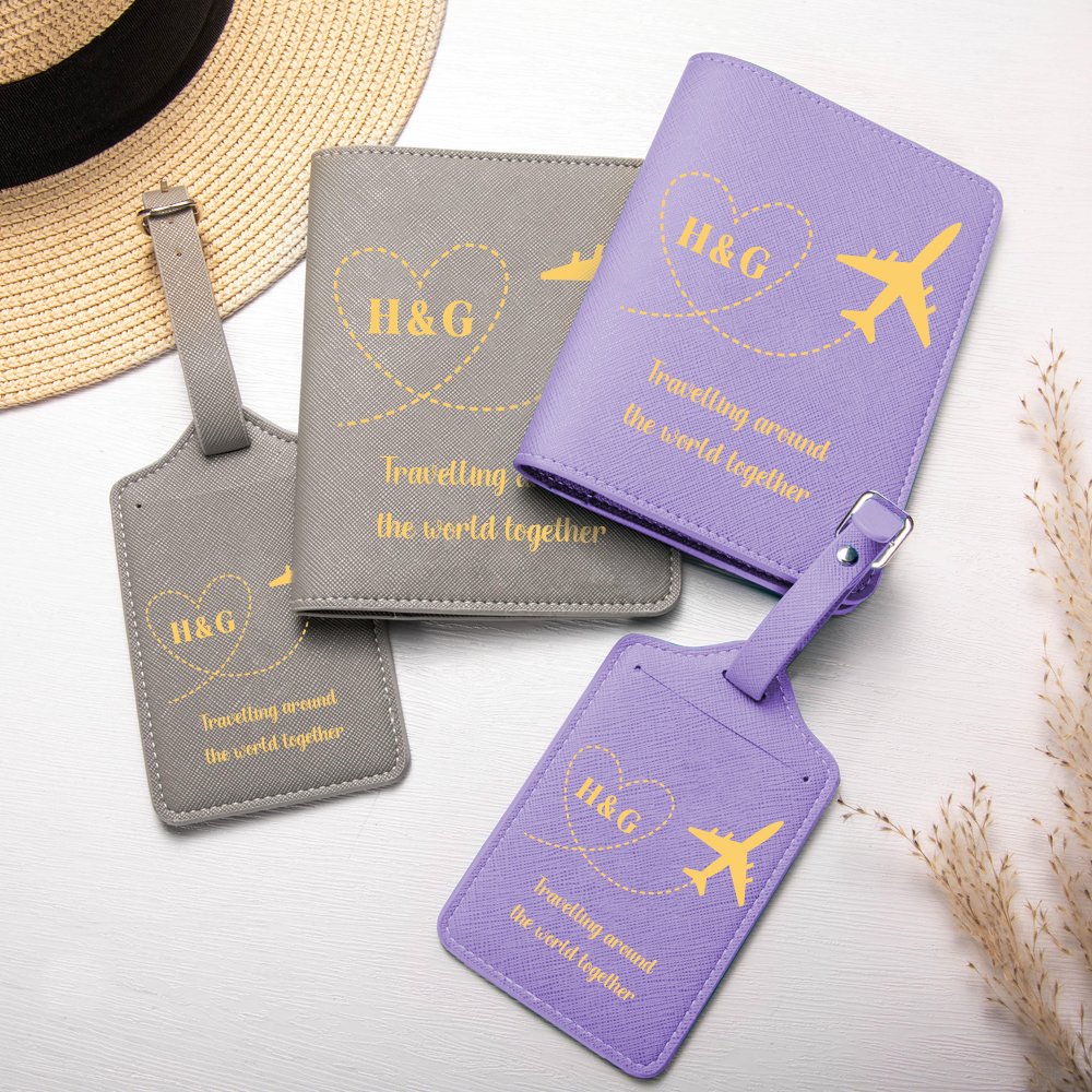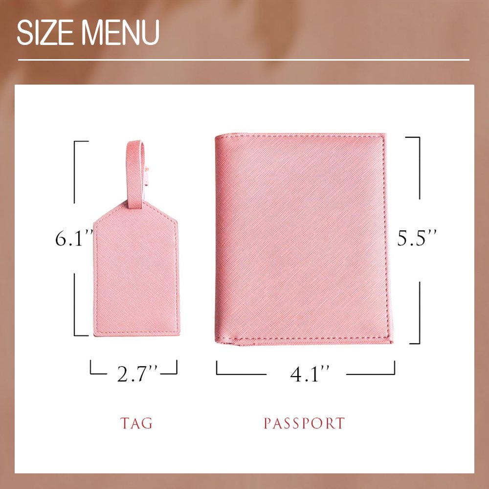 The passport holder features multiple slots to accommodate your passport, cards, and other essential documents, ensuring everything is easily accessible. The luggage tag, adorned with your personalized message, adds a touch of personalization and helps you quickly identify your bags, making the hassle of navigating busy airports a breeze.