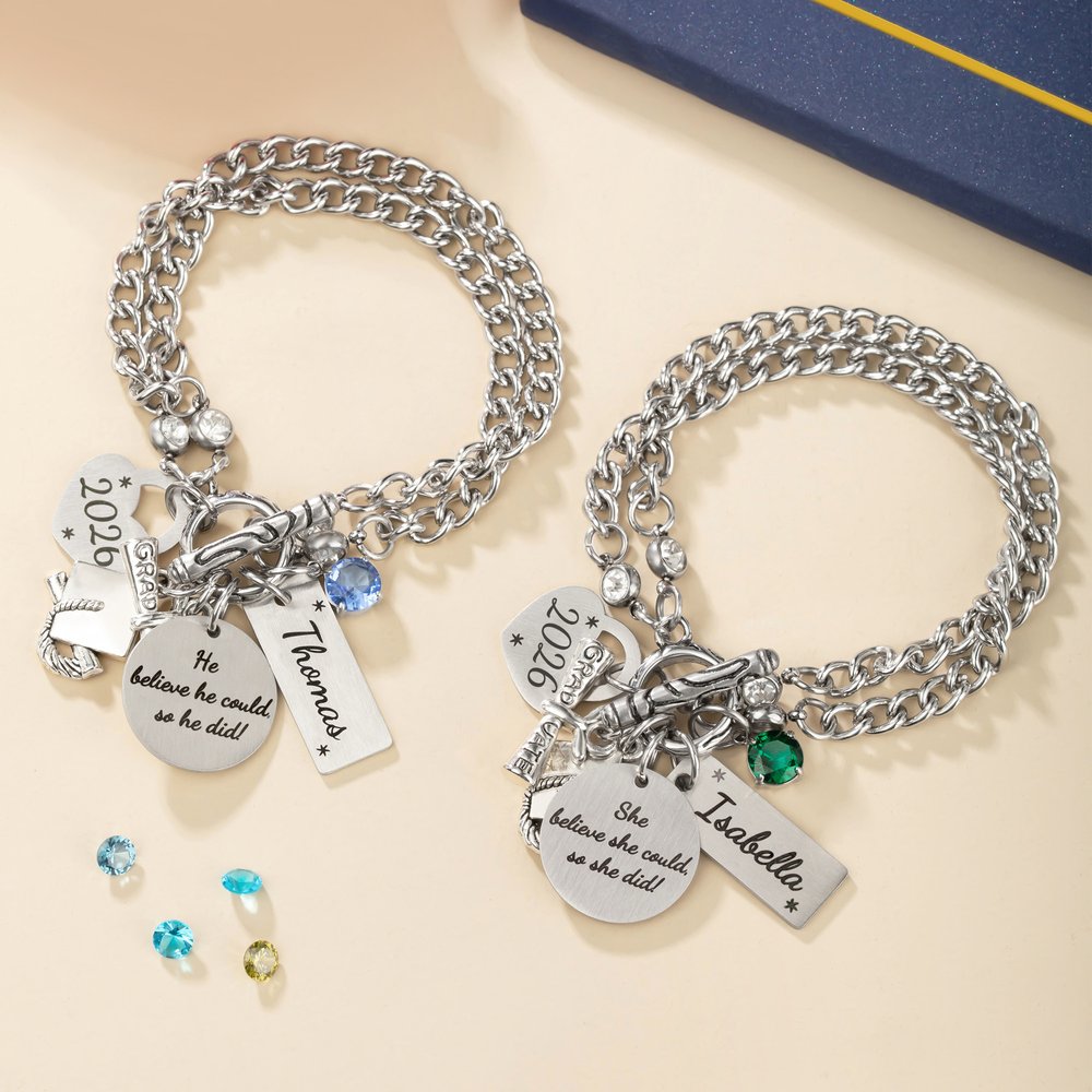 Whether they’re finishing high school or college, this bracelet is a meaningful and stylish gift for daughters, sons, friends, or classmates. Celebrate their accomplishments with a token that’s as personal and lasting as the memories they’ve made. Perfect for graduation season, birthdays, or any moment worth honoring.