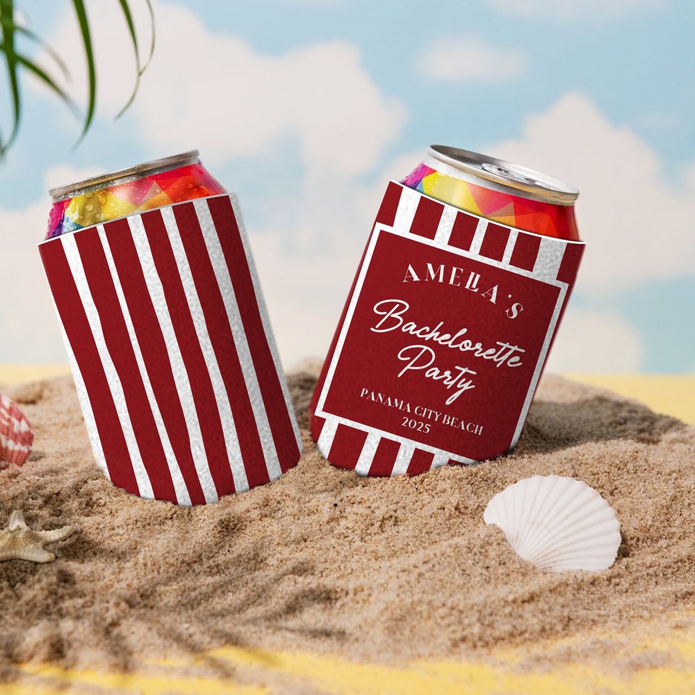 This can cooler features a stylish modern stripe pattern and the artistic text "Bachelorette Party," exuding a fresh and vibrant vibe. You can customize the cooler with colors, names, dates, and locations, making it a unique party decoration. It transforms every gathering into a joyful celebration, creating beautiful memories with friends and loved ones.