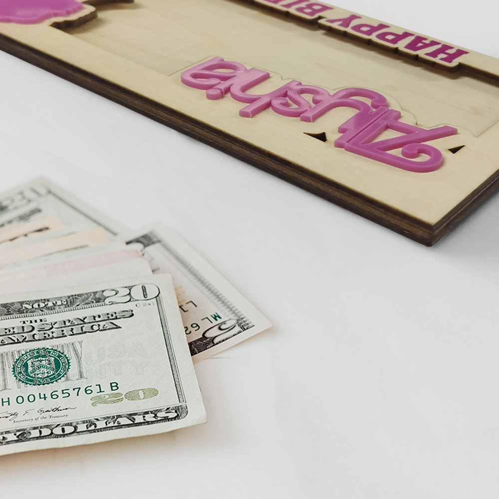 This gift melding the utility of a money envelope for cash with the sentimental value of a personalized item, it is a great alternative to traditional cards! It can act as a stand-alone gift or hold cash or gift cards. Opening this custom name money holder brings a level of excitement that standard cards or money envelopes for cash can't match.