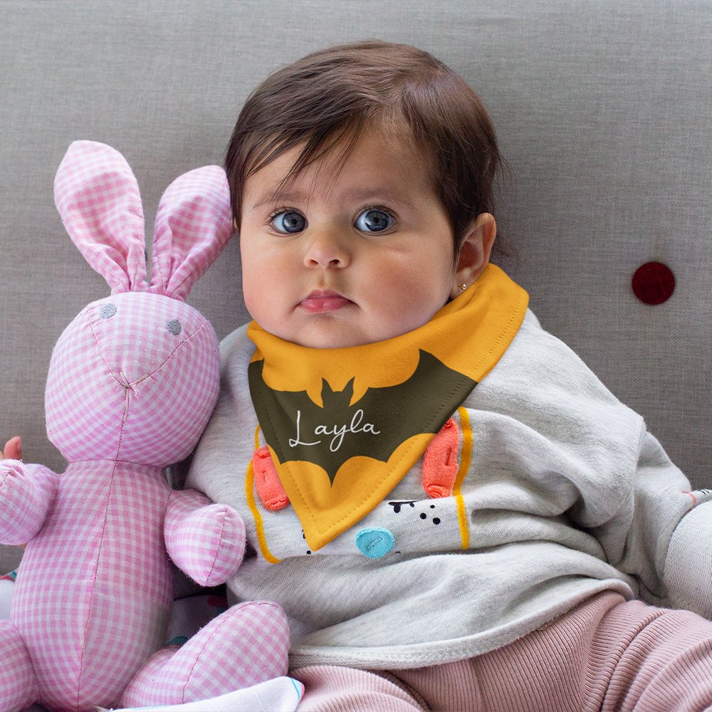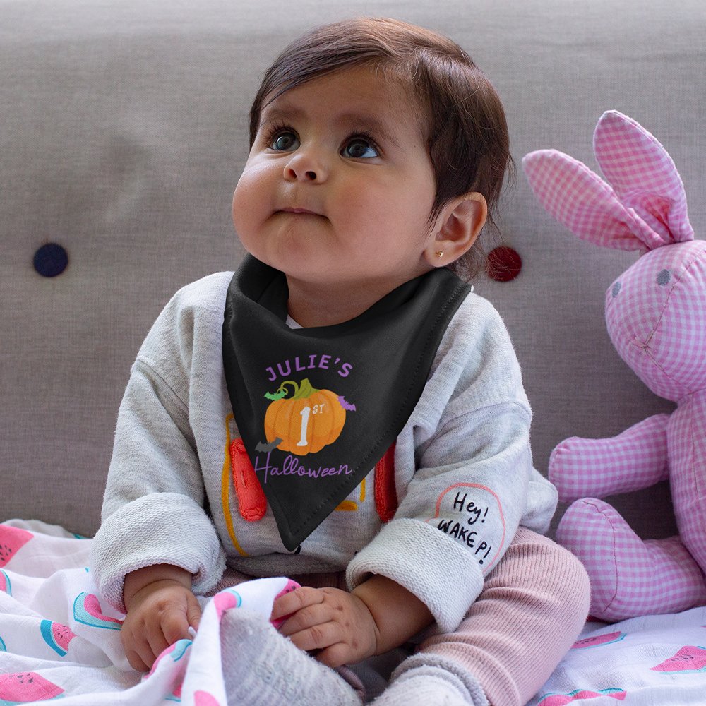 The bib has two kinds of styles, pumpkin patterns, and bats, respectively. Both patterns are Halloween-related elements that help add to the festive atmosphere. You can also customize the baby's name on the bib, allowing you to create a unique gift.