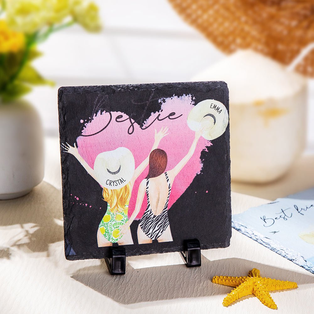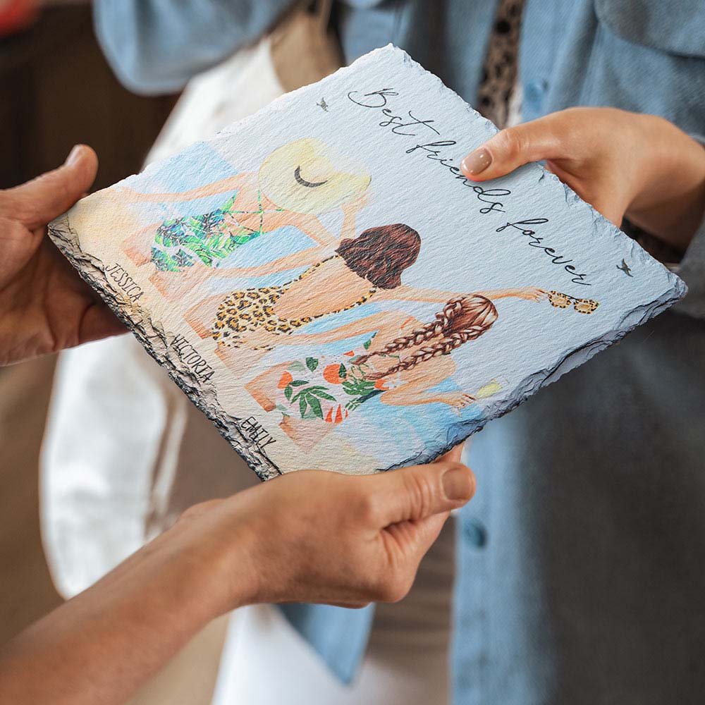 This square slate plaque makes a unique gift for the best sister. According to your characteristics, there are so many details for you to customize, such as hairstyle, hair color, skin tone, and posture. The unique fracture edge of each slate represents uniqueness, meaning friendship is also unique. Give this besties plaque to your friends to express your love for her.