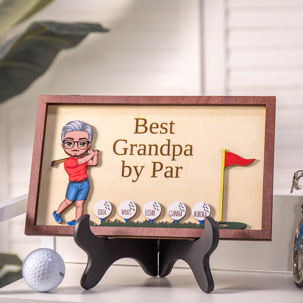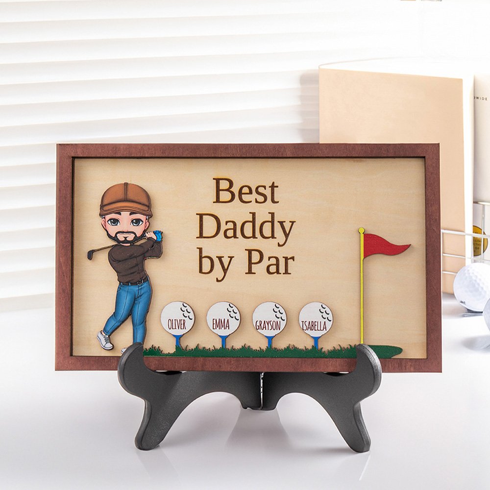 This plaque not only showcases the elegance and charm of the sport of golf but can also be personalized with cartoon golf characters to suit your image. Up to 8 golf balls can be customized, each representing a family member, and the golf balls are customized with everyone's name. The copywriting "by Par" of "Best...by Par" is a homophone of by Far, which is the number of strokes in golf, making the plaque more unique and attractive.