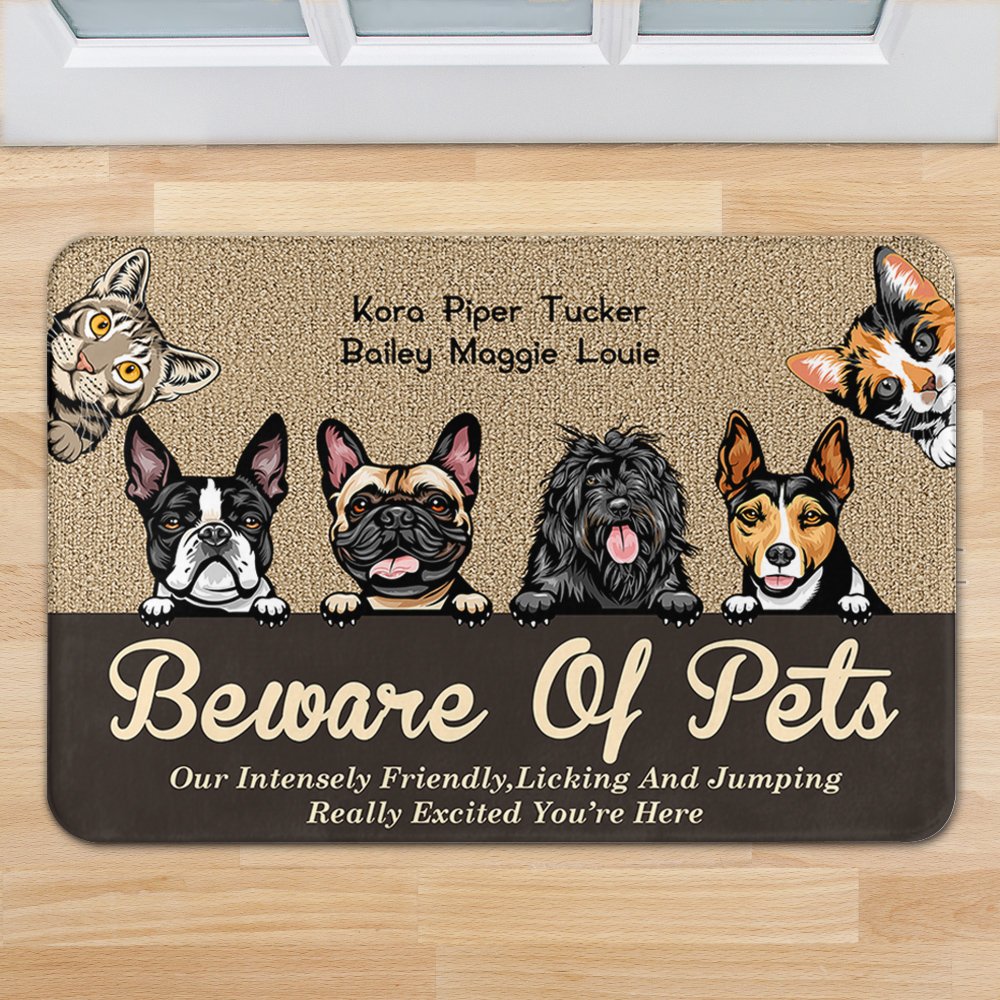 Personalized Beware Of Pet Really Excited You're Here Door Mat Birthday Gift for Dog Cat Lover Home Decoration