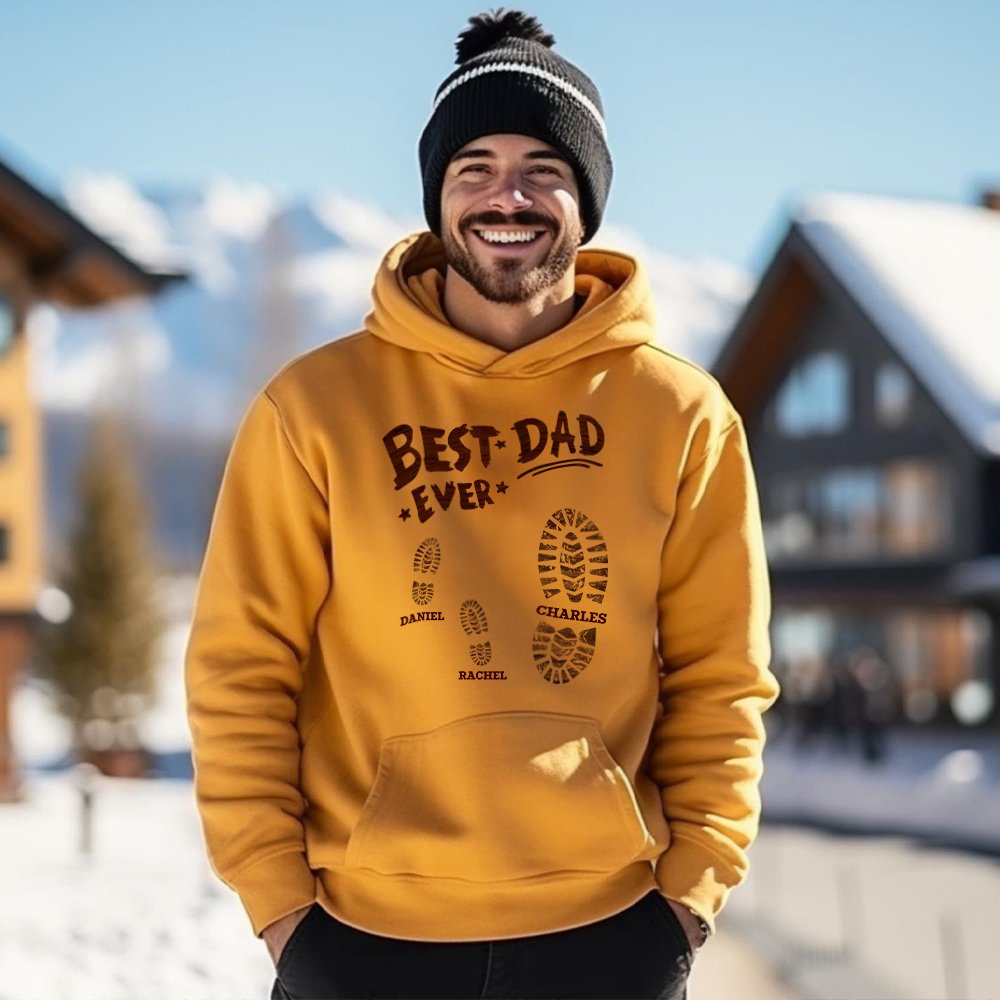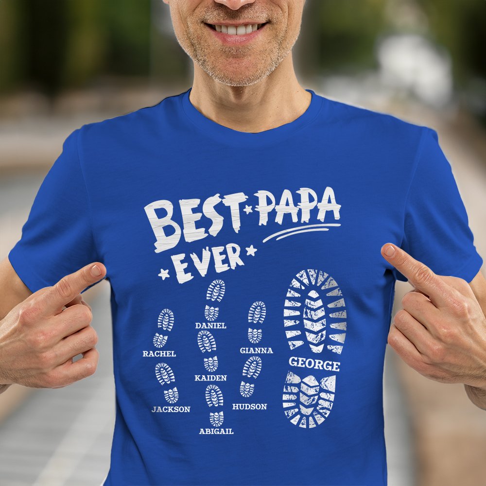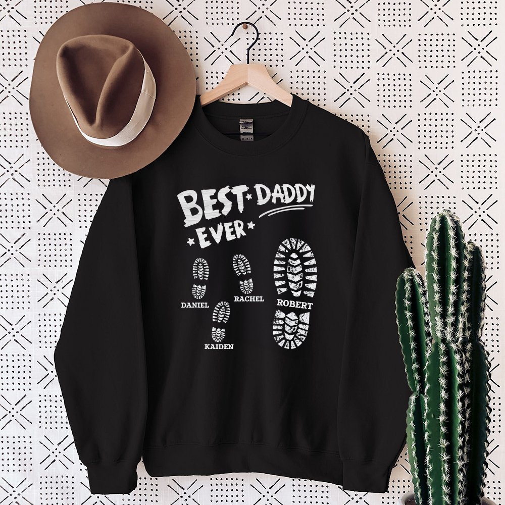 The design of this garment is irresistible, with a large footprint and 1-10 small footprints representing dad and children, and the simple slogan "BEST ... EVER" is stylish and eye-catching. You can personalize the names of dads and children to make this garment a unique signal between father and son.