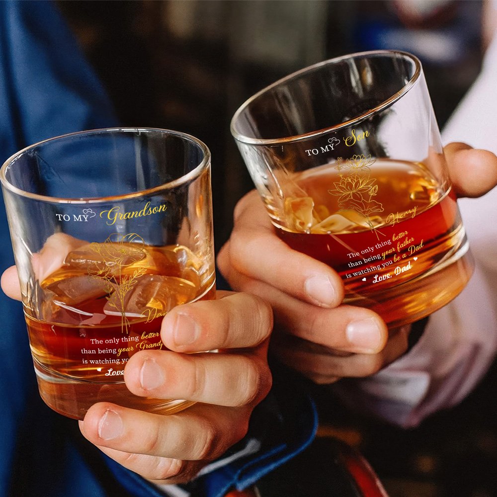 Personalized Birth Flower 10 oz Whiskey Glass with Name and Slate Coaster Father's Day Newborn Birthday Gift for New Dad Kids