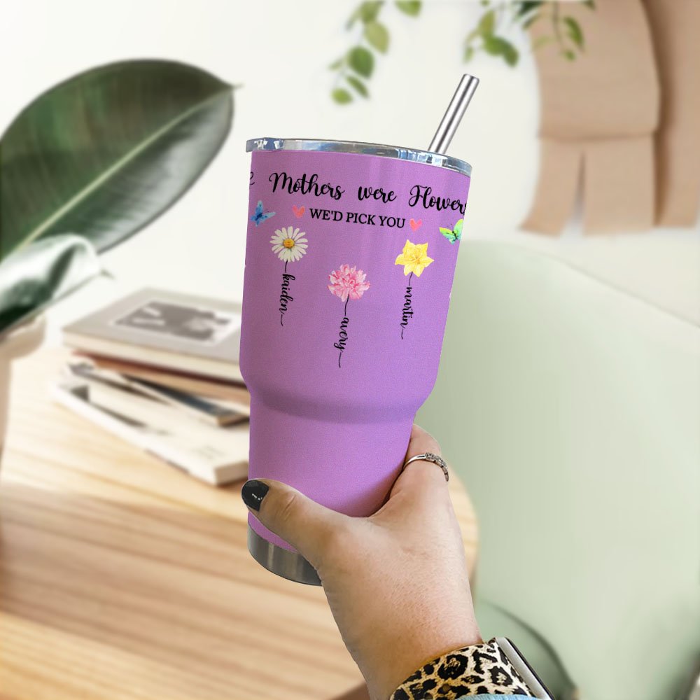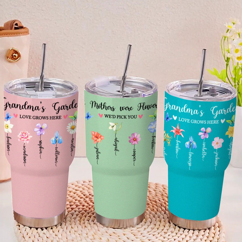 With its generous 30oz capacity, this tumbler is suitable for a variety of beverages, from hot coffee to refreshing iced drinks. The sleek stainless steel design and personalized birth flower details make it a stylish accessory that can be used at home, work, or on the go, allowing mom and grandma to carry their loved ones' names and the beauty of birth flowers wherever they go.