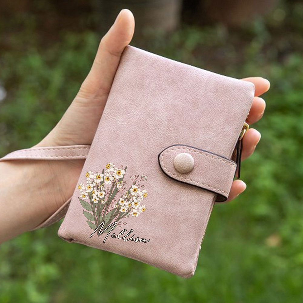 Surprise her with this thoughtful and personalized gift that celebrates her birth month and adds a touch of elegance to her everyday life. Whether it's for a birthday, anniversary, or any special occasion, this wallet is a perfect choice. Every time she reaches for her wallet and sees the personalized birth flower bouquet design, she will be reminded of your love and thoughtfulness.