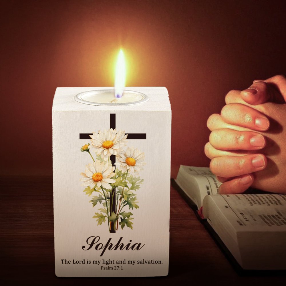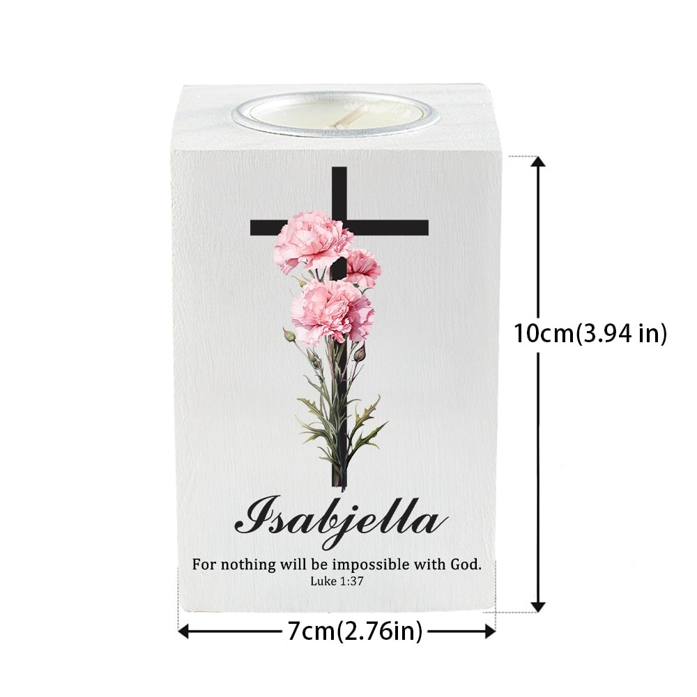 Personalized Birth Flower Cross Bible Verse Wooden Candle Holder with Name Birthday Baptism Gift for Christians