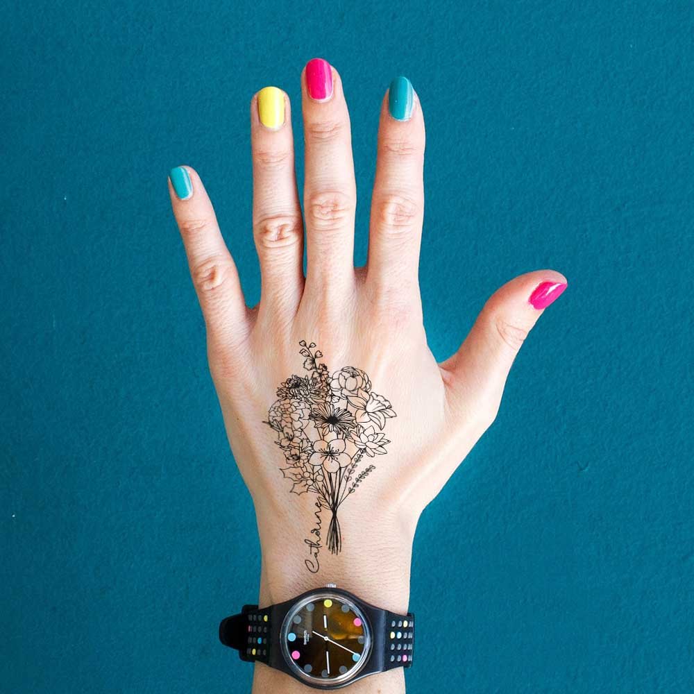 With birth bouquet tattoo stickers, you can customize a variety of different birth flowers, and then customize your exclusive name, you can get a special tattoo! A fun, unique, and memorable way to celebrate the big day.