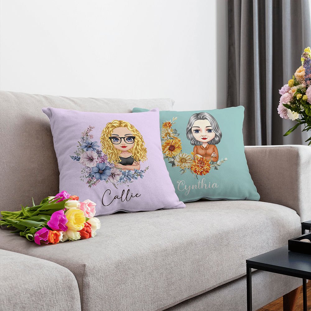 This soft pillow cover combines unique design concepts with warm elements. Each pillowcase displays a beautiful half-wreath design and cute cartoon characters, representing the flowers of birth in different months, symbolizing unique personalities and blessings. You can customize the name as needed, making each pillowcase unique and conveying your deep affection for your mother or grandmother.