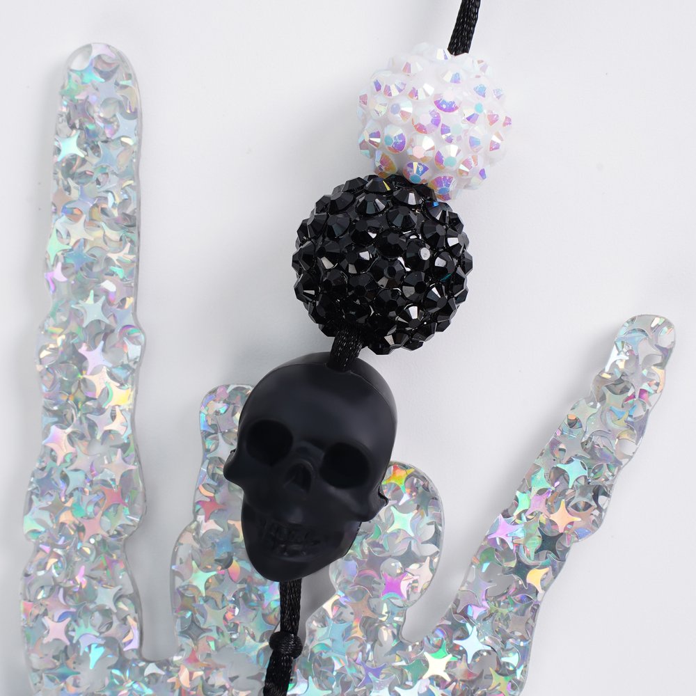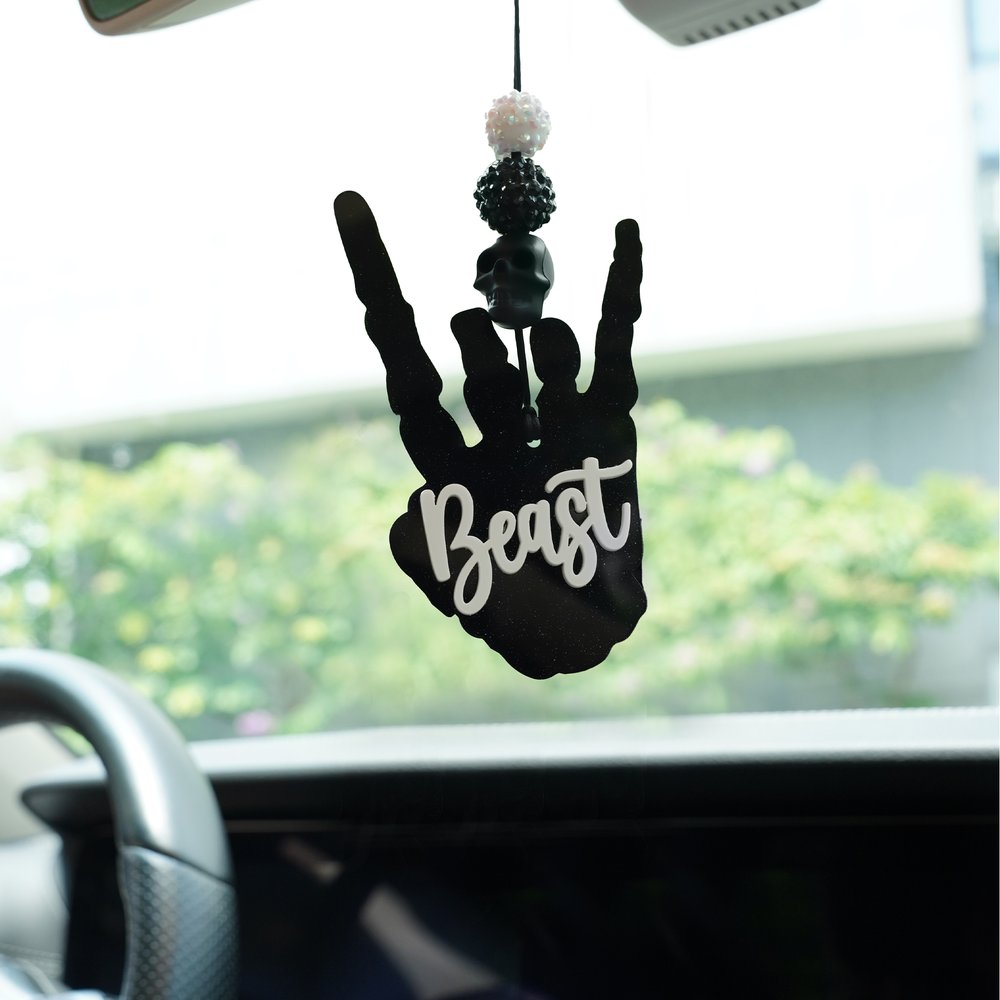 Inspired by the iconic rock hand gesture, this car charm combines skull elements with a vibrant black and silver glitter design, creating a striking charm. Customizable names make each charma a unique and personal symbol. When hung on your rearview mirror, it not only showcases your avant-garde attitude but also infuses your car's interior with the rebellious allure of rock culture, instantly distinguishing it from ordinary car decor.