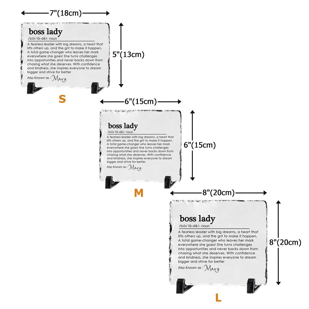 The "Boss Lady" slate is designed with inspiring words, and the slate can be personalized with a name, adding a special and unique touch. The empowering definition on the slate is dedicated to women who lead with strength, confidence, and purpose and is a meaningful way to honor determination, resilience, and ambition.