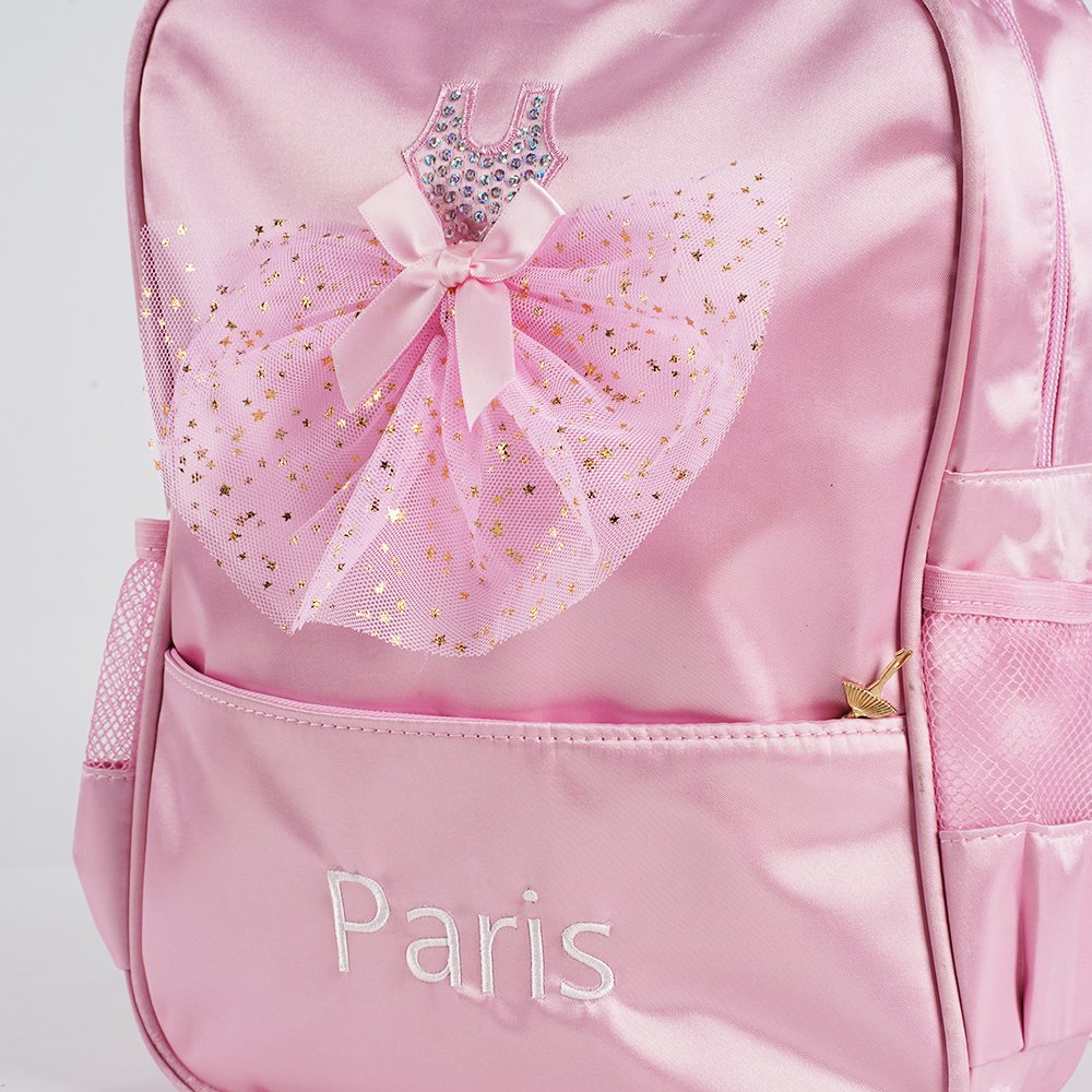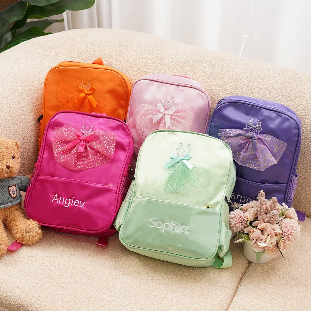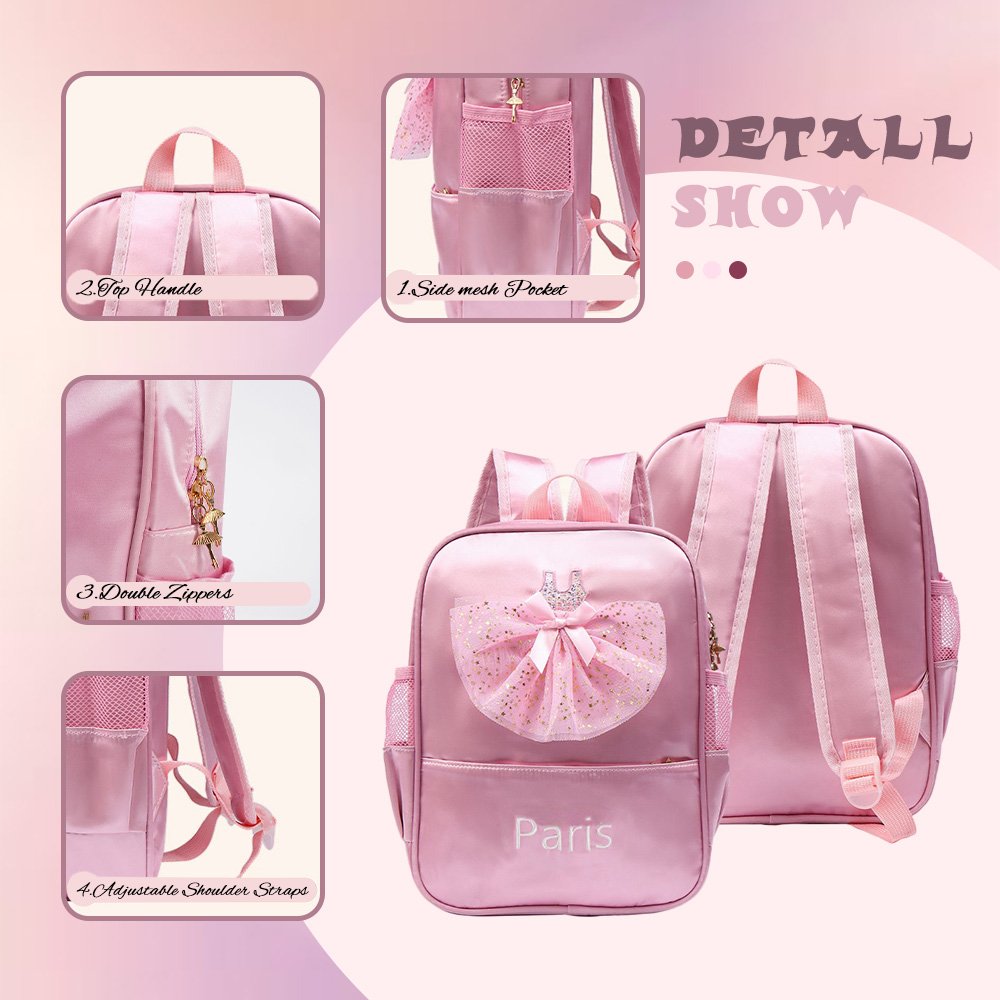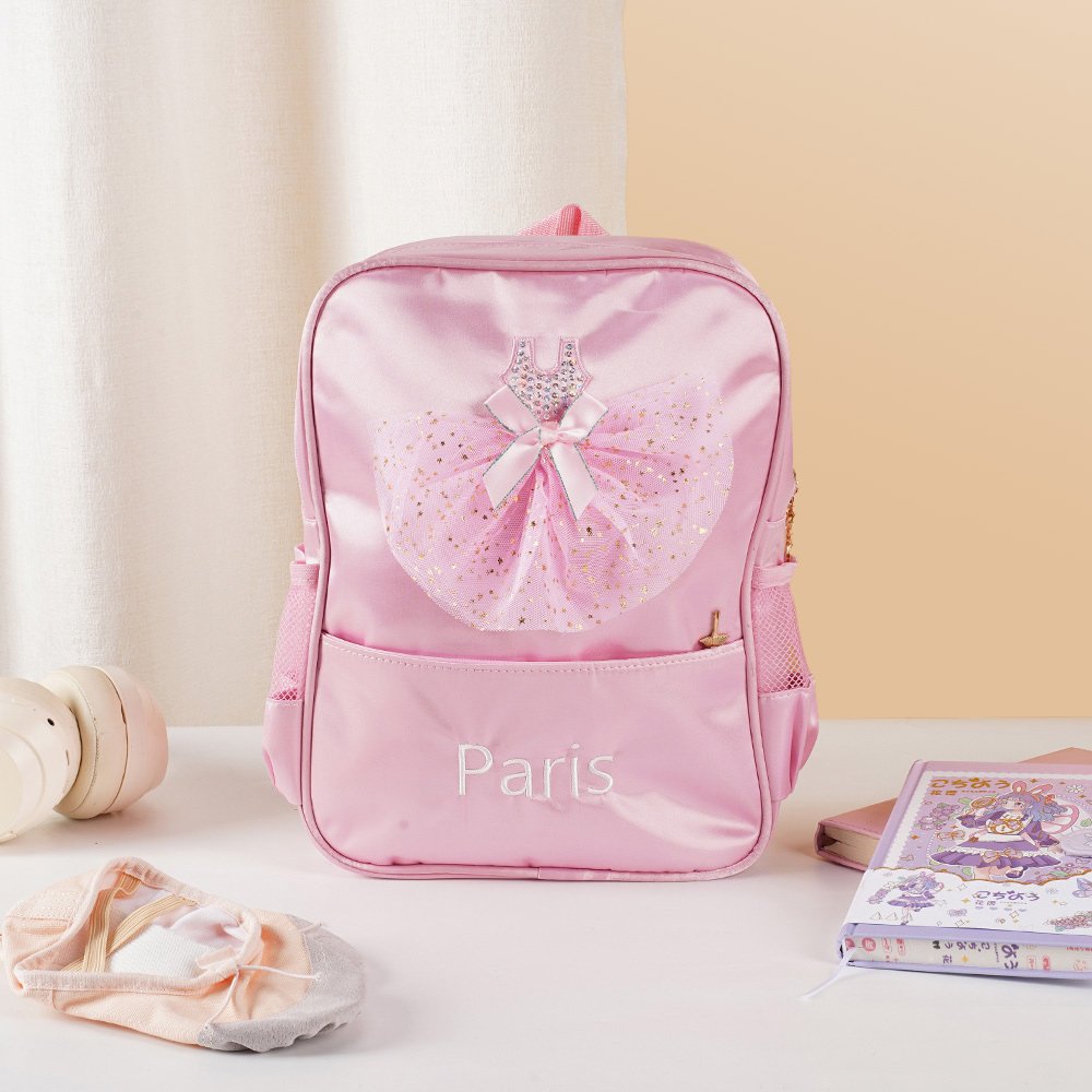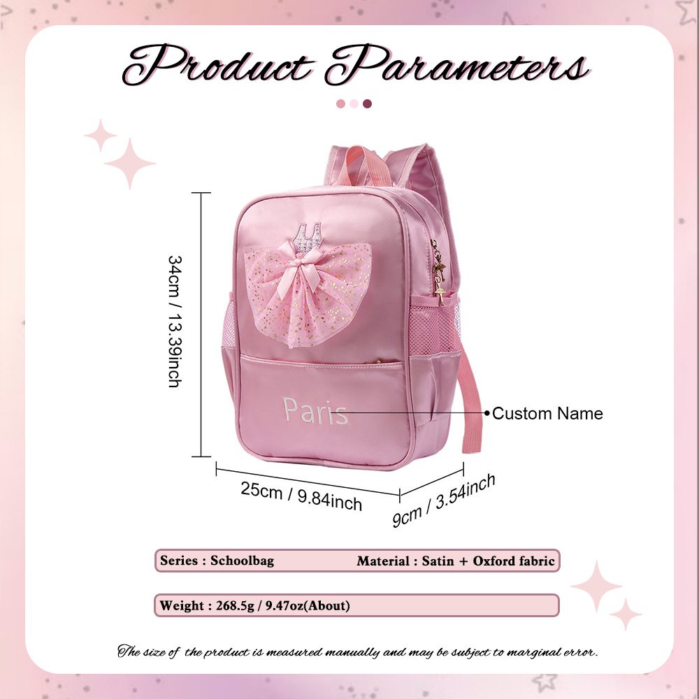 This backpack adopts a sweet ballet theme design, and the front of the backpack is decorated with a delicate ballet skirt pattern, adding cuteness and elegance. You can also customize it with your child's name to create a unique backpack that stands out.