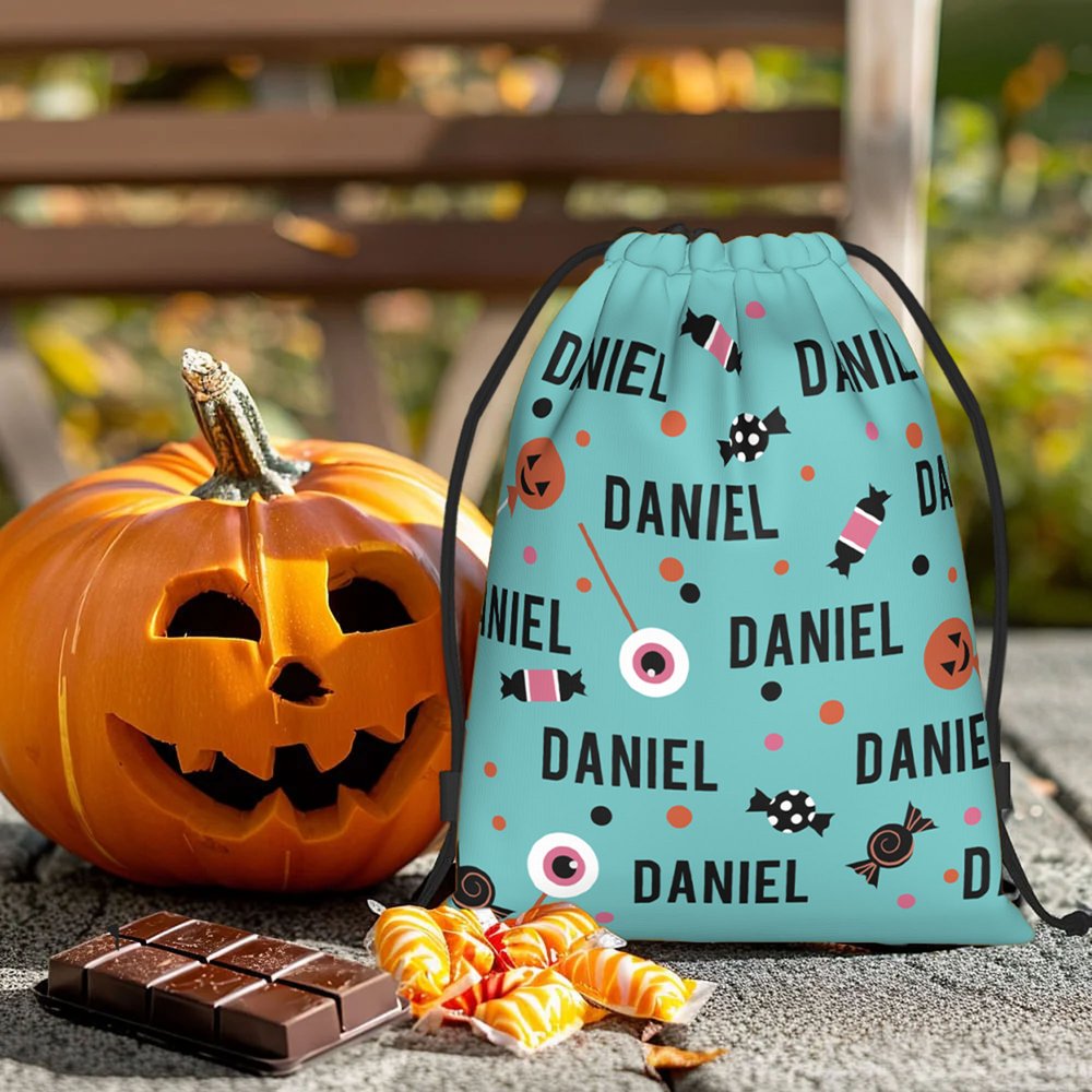 This Halloween drawstring bag is the perfect blend of fun and personalization! Available in pink and blue, it features spooky yet sweet designs like candy and eyeballs. You can even engrave your child's name to create a one-of-a-kind accessory for Halloween or other holiday celebrations.
