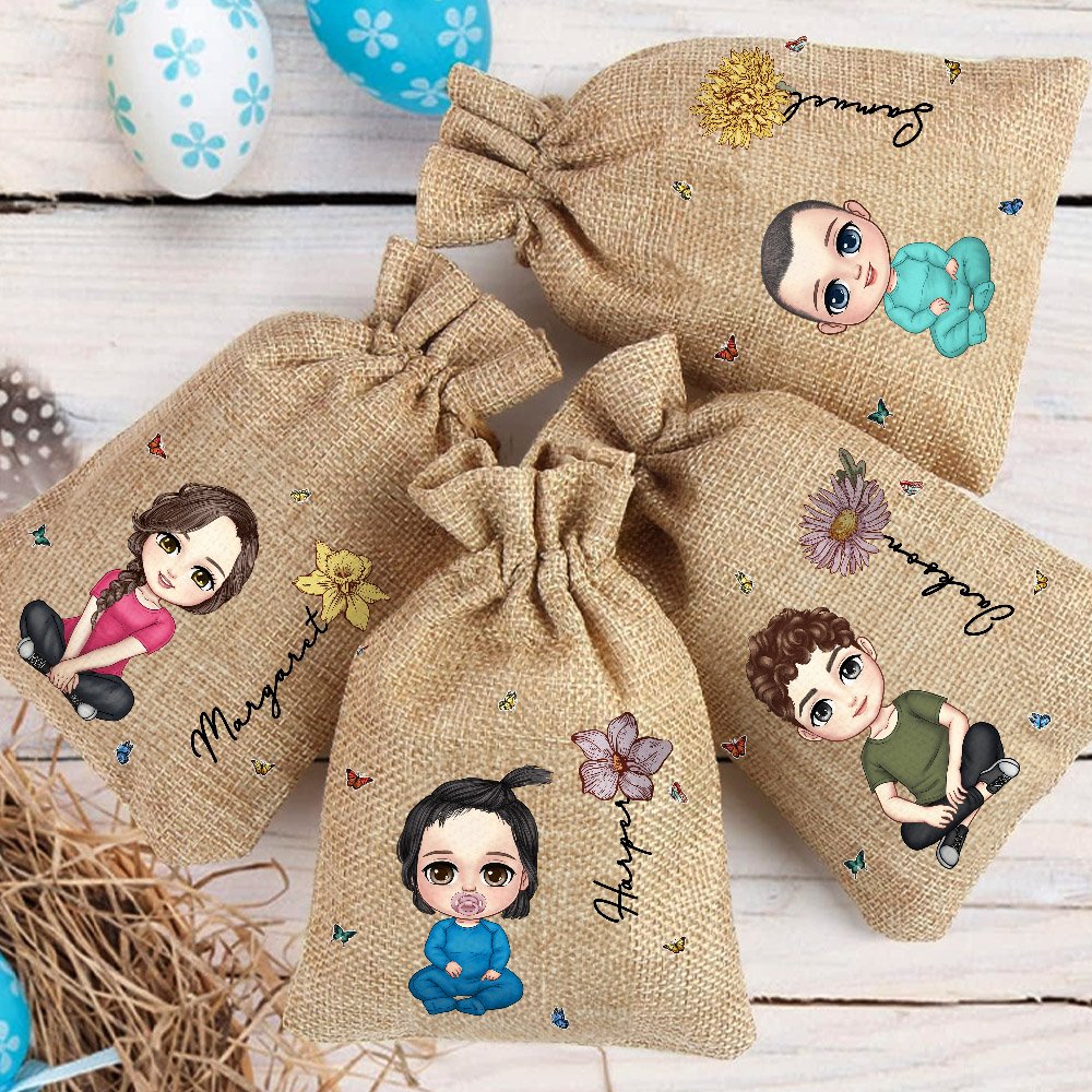 This charming treat bag features a cute cartoon character and a beautiful birth flower. It can be customized with the recipient's name to make the bag special for each one. It’s easy to recognize and even more fun to carry during Easter egg hunts or gatherings.