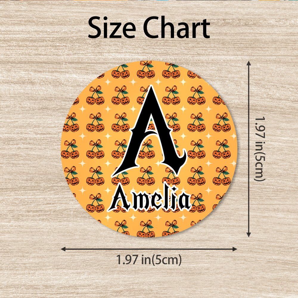 Each sticker cleverly combines the adorable cherry pumpkin imagery with personalized initials and names, perfectly capturing the mystery and fun of Halloween. The customizable initials and names make each sticker unique, adding a touch of personality and warmth, and providing a special commemorative significance for the holiday.