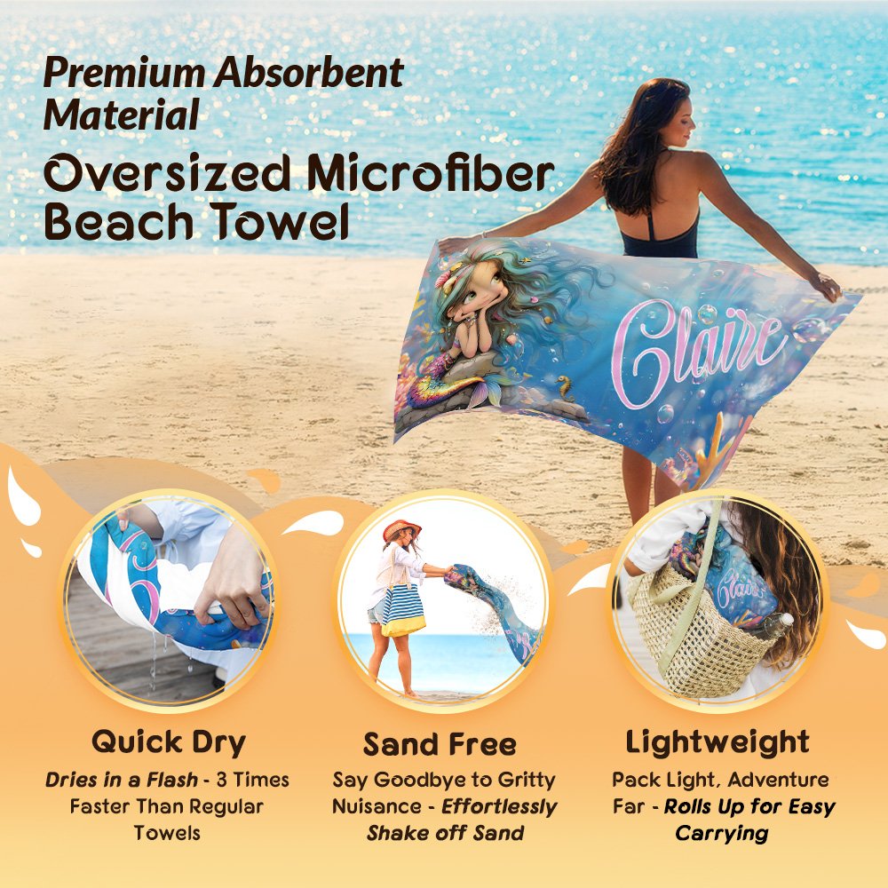 | Feature: | Super Absorbent, Fast Drying, Sand Free, Durable and Soft, Oversized, Cartoon Mermaid Design |