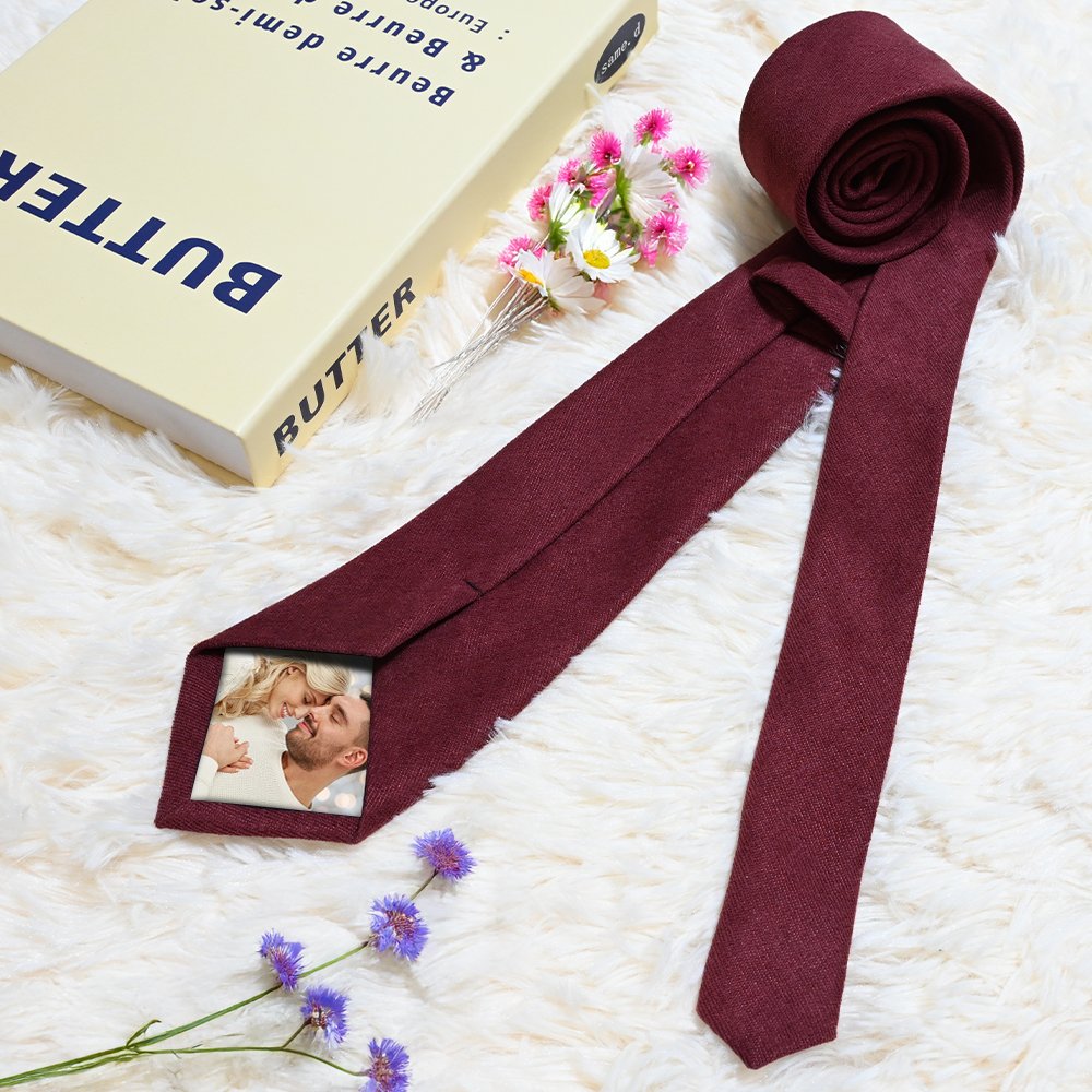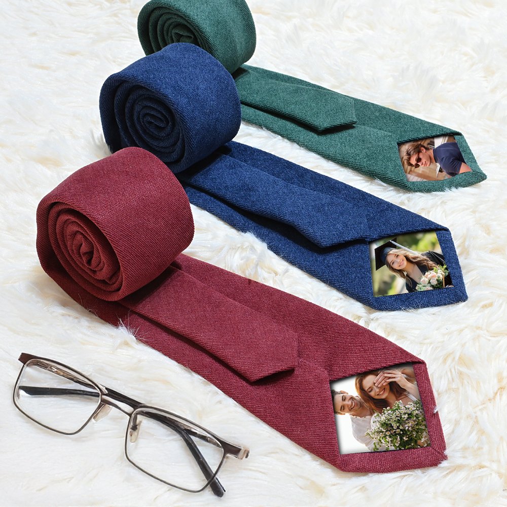 Our ties come in 10 colors including black, dark grey, green and burgundy and are custom-designed with photos for an eye-catching look. You can personalize the gift box by adding the recipient's name, making it a truly unique and meaningful accessory.