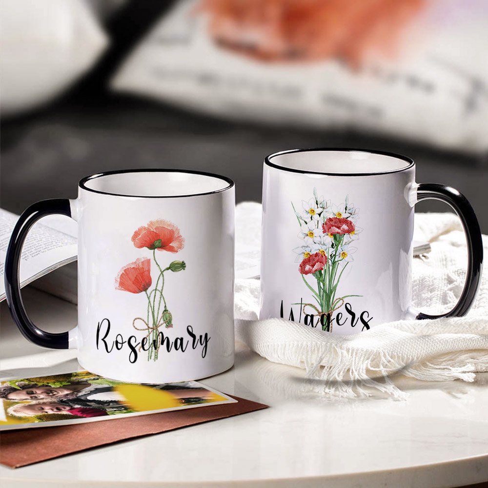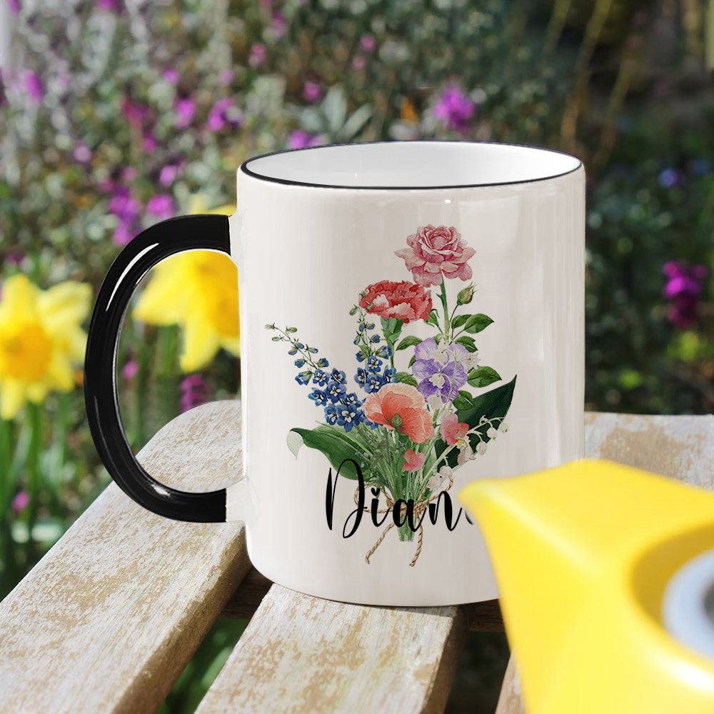 Celebrate your grandma or mother with the birth flower bouquet coffee mug on Mother's Day, Thanksgiving Day, birthday, Christmas day, etc.