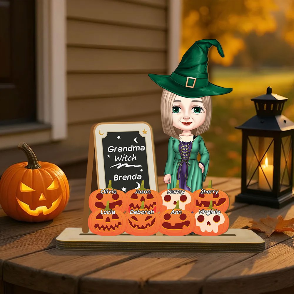 Centered around witch and pumpkin motifs, this design features customizable names for 1-8 children. Its overall style blends Halloween whimsy with family warmth. Personalizing with children's names transforms this piece from ordinary holiday decor into a cherished keepsake—celebrating the season while subtly honoring family bonds.