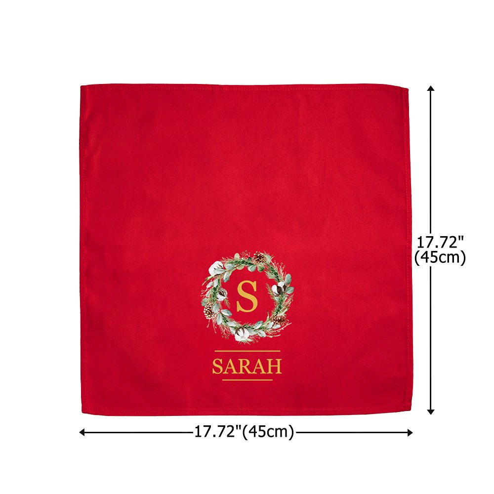 Personalized Christmas Wreath 100% Cotton Red Table Napkin with Initial and Name Table Decor Christmas Gift for Family Friend