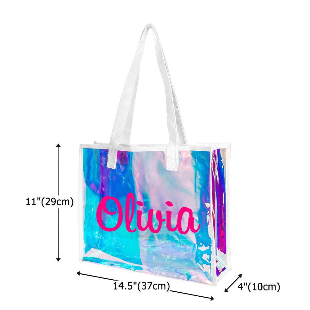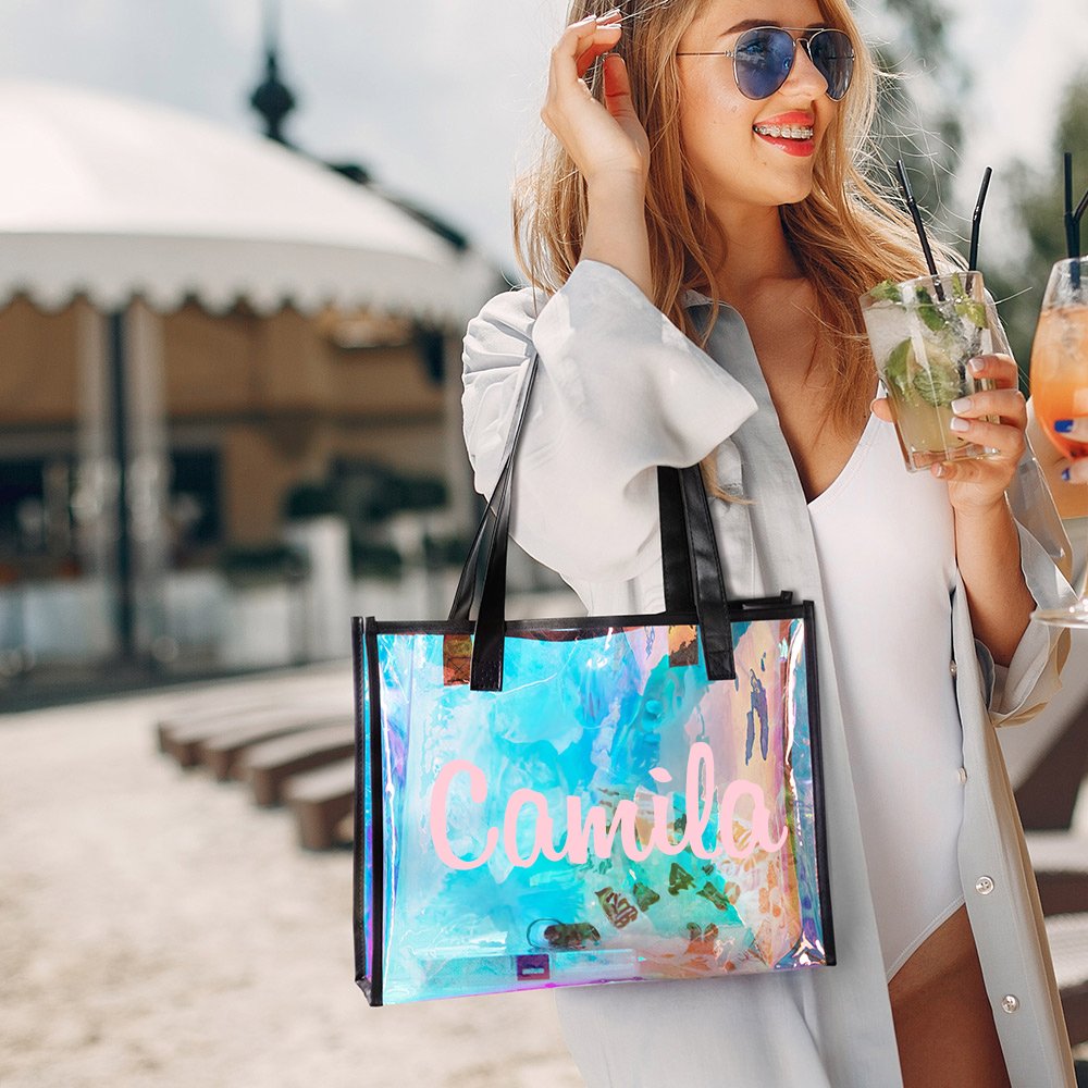 Our clear tote bags are designed with both style and personalization in mind. With full customization options, you can add your name and choose the font color to make your bag truly one-of-a-kind. Stand out from the crowd and showcase your individuality with a bag that reflects your personality.